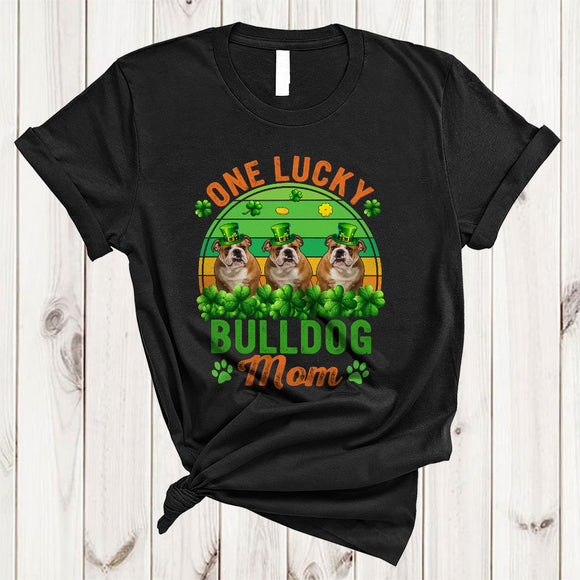 One Lucky Bulldog Mom, Lovely St. Patrick's Day Three Leprechaun Dog, Retro Shamrocks T-Shirt