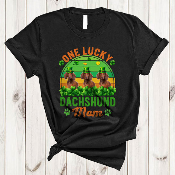 One Lucky Dachshund Mom, Lovely St. Patrick's Day Three Leprechaun Dog, Retro Shamrocks T-Shirt