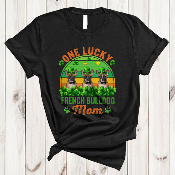 One Lucky French Bulldog Mom, Lovely St. Patrick's Day Three Leprechaun Dog, Retro Shamrocks T-Shirt