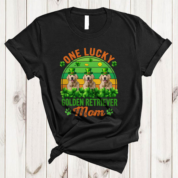 One Lucky Golden Retriever Mom, Lovely St. Patrick's Day Three Leprechaun Dog, Retro Shamrocks T-Shirt