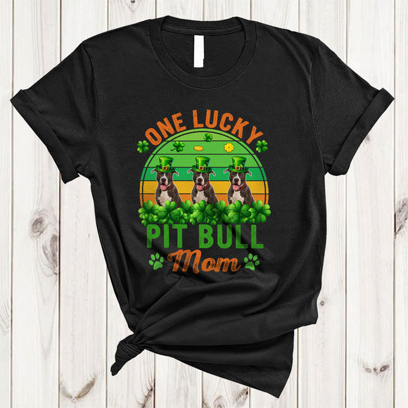 One Lucky Pit Bull Mom, Lovely St. Patrick's Day Three Leprechaun Dog, Retro Shamrocks T-Shirt