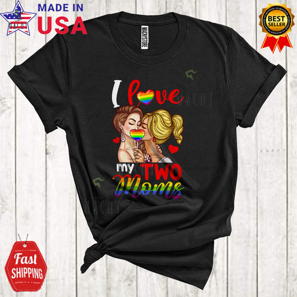 I Love My Two Moms Cute Cool Mother's Day LGBTQ Pride Bisexual Lesbian Matching Family Lover T-Shirt