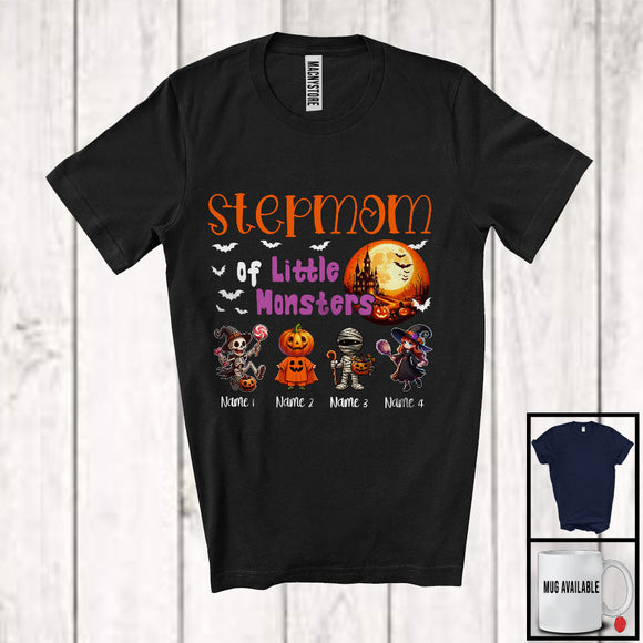 Personalized Stepmom Of Little Monsters; Creepy Halloween Family Custom Name Group T-Shirt