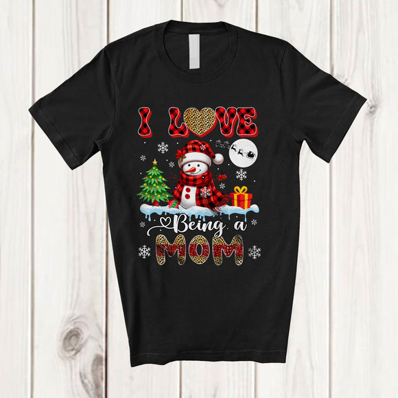 Personalized I Love Being A Mom; Lovely Christmas Leopard Plaid Snowman; Custom Name Family T-Shirt