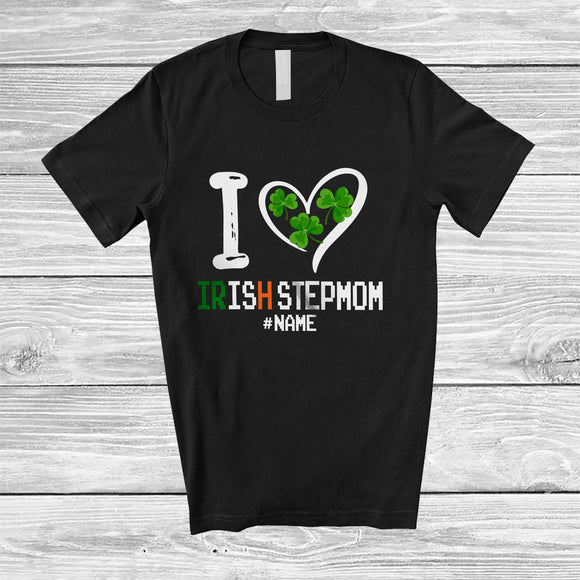 Personalized I Heart Irish Stepmom; Lovely St. Patrick's Day Shamrocks; Custom Name Family T-Shirt