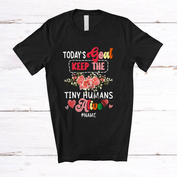 Personalized Custom Name Today's Goal Keep the Tiny Humans Alive; Lovely Mother's Day Flowers T-Shirt