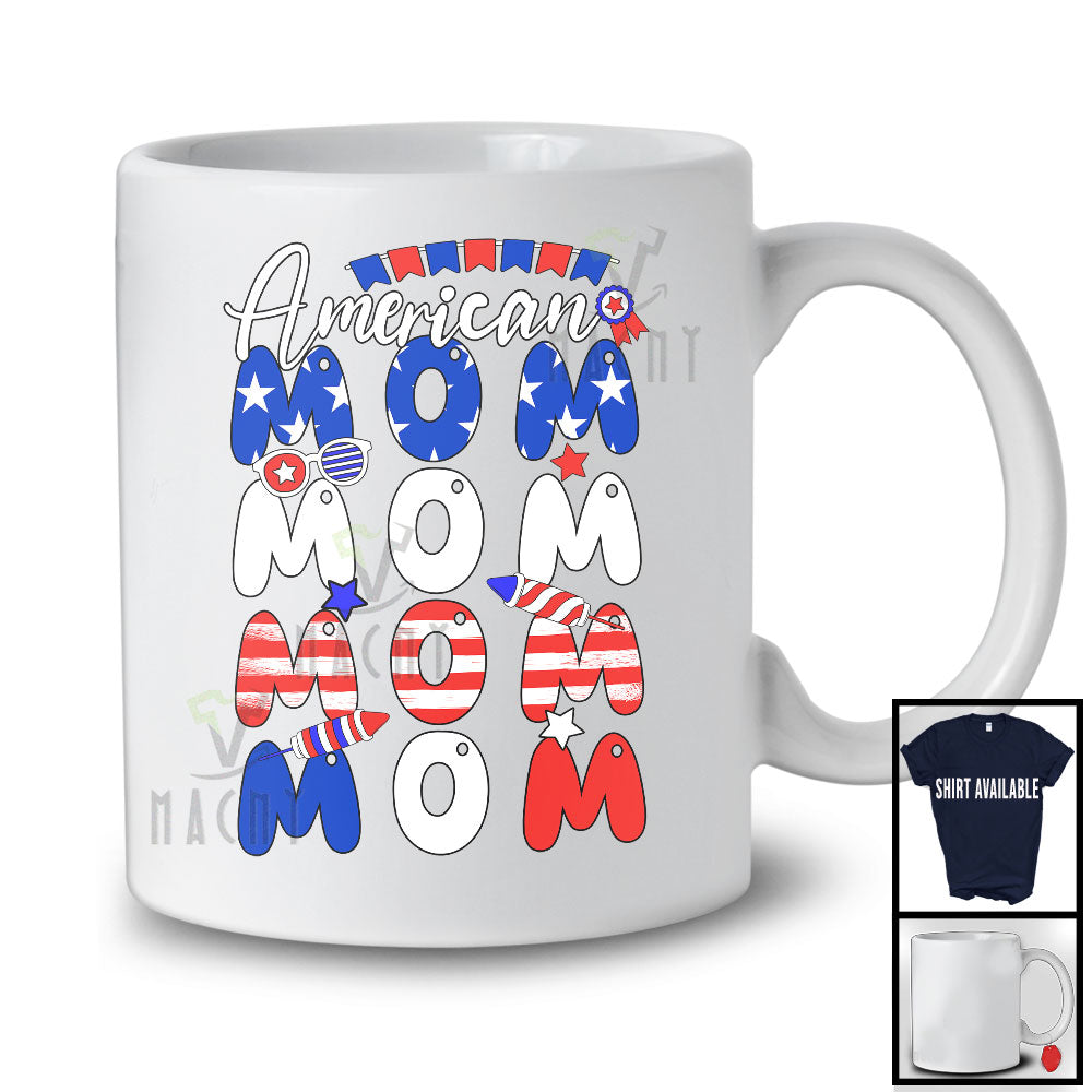 American Mom, Proud 4th Of July Mother's Day American Flag, Patriotic Family Group T-Shirt