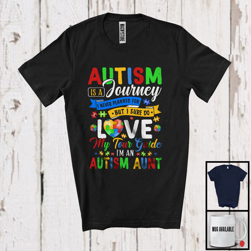 Autism Is A Journey I'm An Autism Aunt, Wonderful Mother's Day Puzzle Heart, Family Group T-Shirt. This cotton t-shirt is a durable staple product with a classic fit. One of the most popular items, it has a relaxed style made for everyday and casual wear.