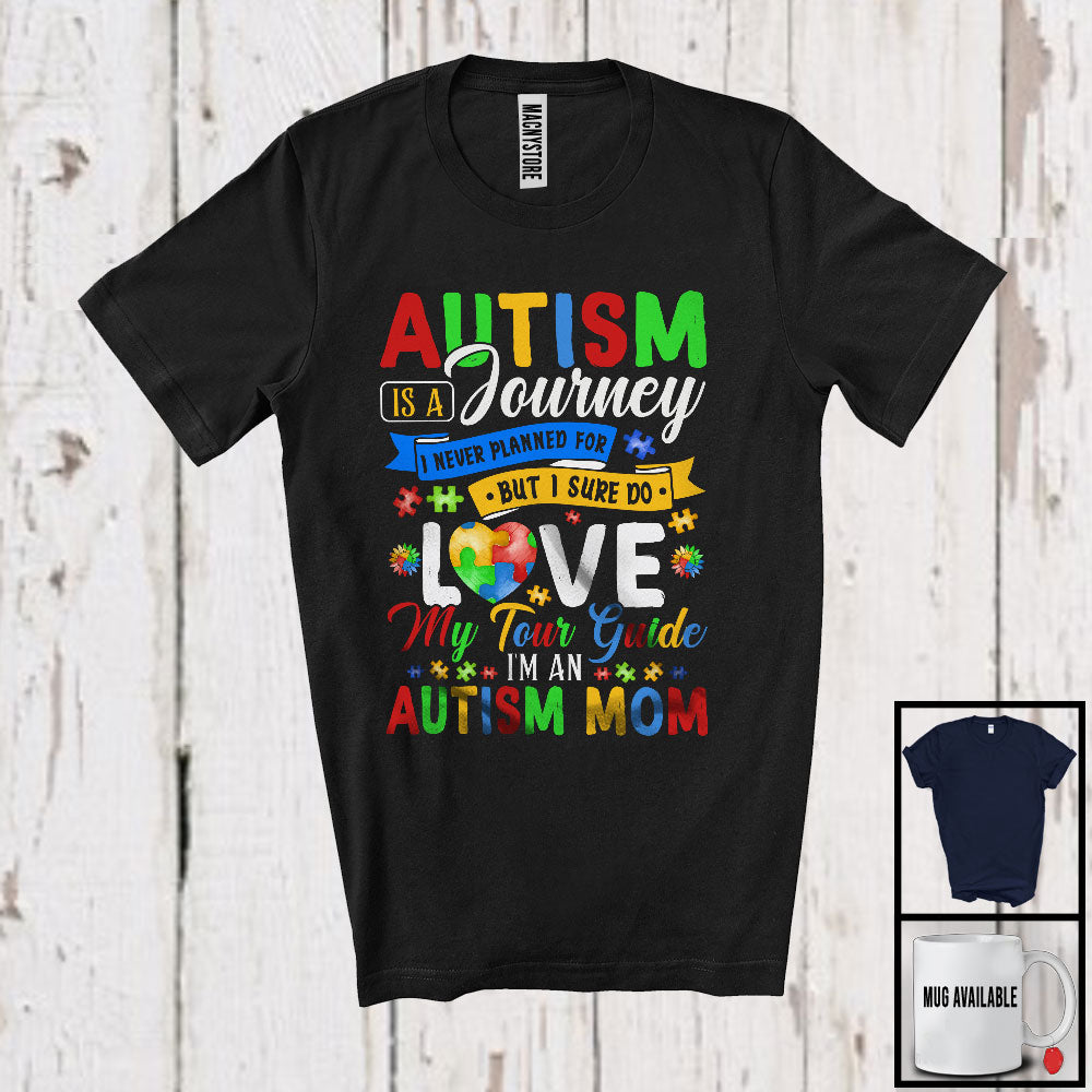 Autism Is A Journey I'm An Autism Mom, Wonderful Mother's Day Puzzle Heart, Family Group T-Shirt. This cotton t-shirt is a durable staple product with a classic fit. One of the most popular items, it has a relaxed style made for everyday and casual wear.