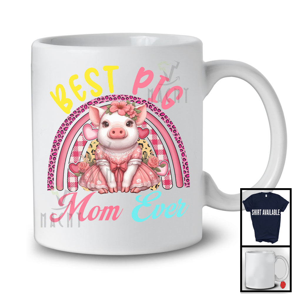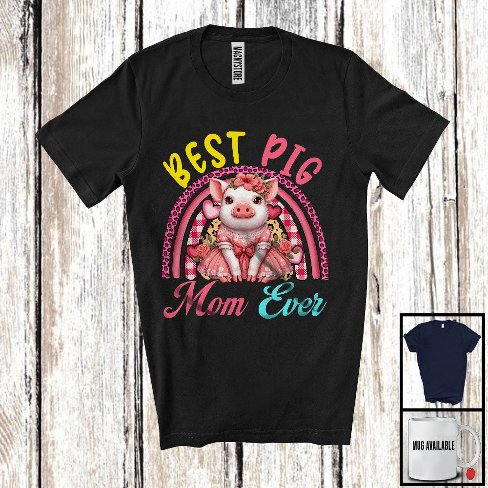 Best Pig Mom Ever, Lovely Mother's Day Leopard Plaid Rainbow, Flowers Family Group T-Shirt