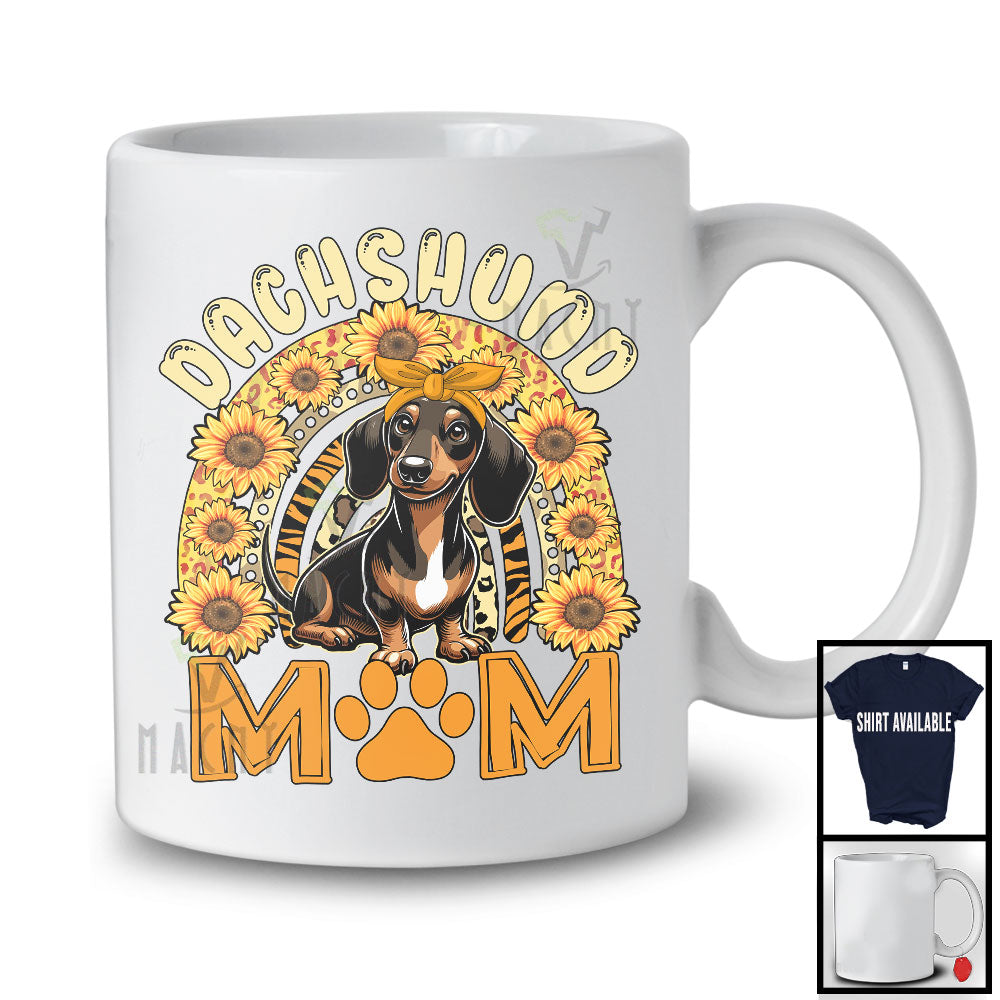 Dachshund Mom, Lovely Mother's Day Puppy Owner Lover, Sunflowers Leopard Rainbow Family T-Shirt