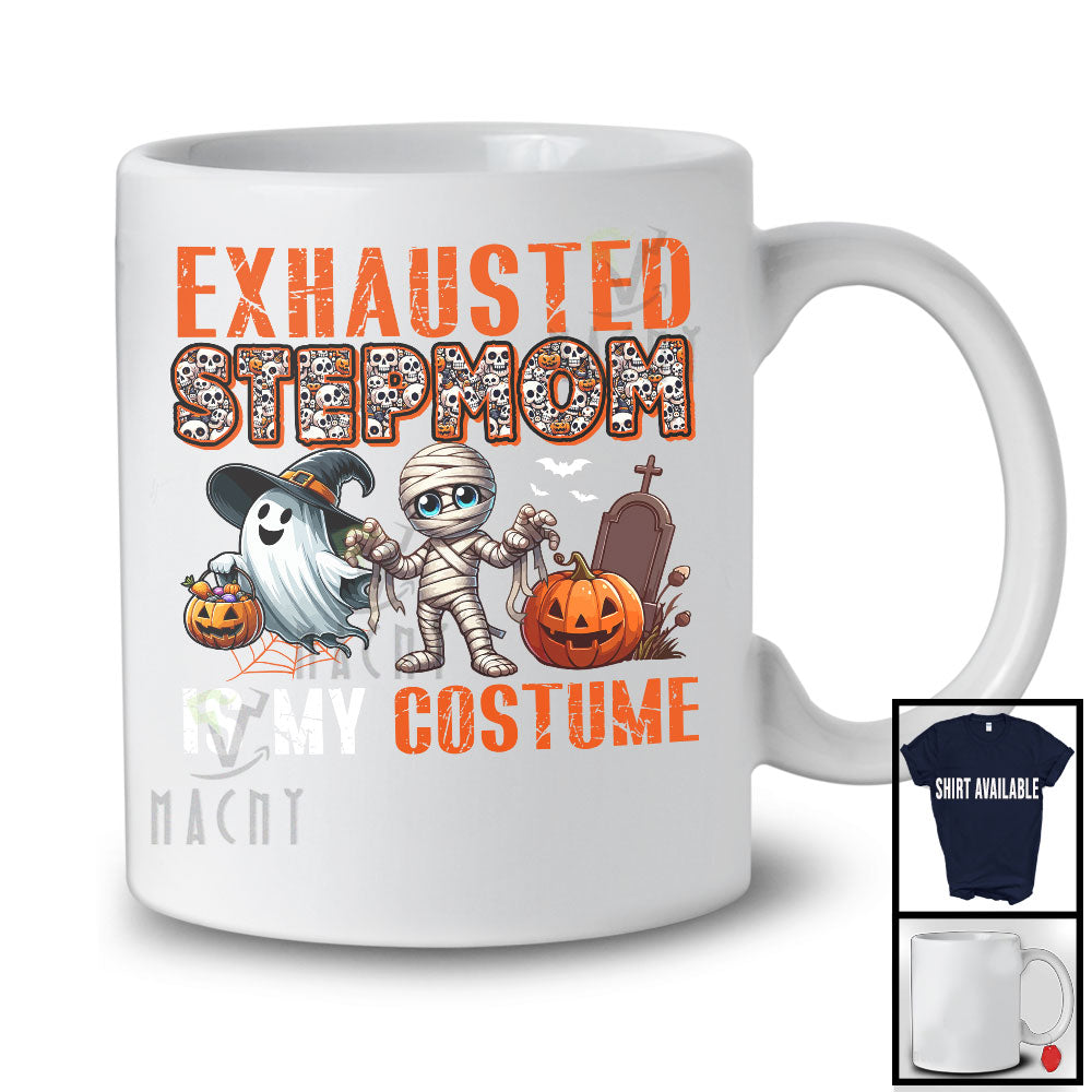 This Exhausted Stepmom Is My Costume; Spooky Halloween Costume Skull Mummy; Women Family Group T-Shirt is great idea gift for your family, friends in this birthday, christmas, mother's day, father's day, patrick's day or any holiday.