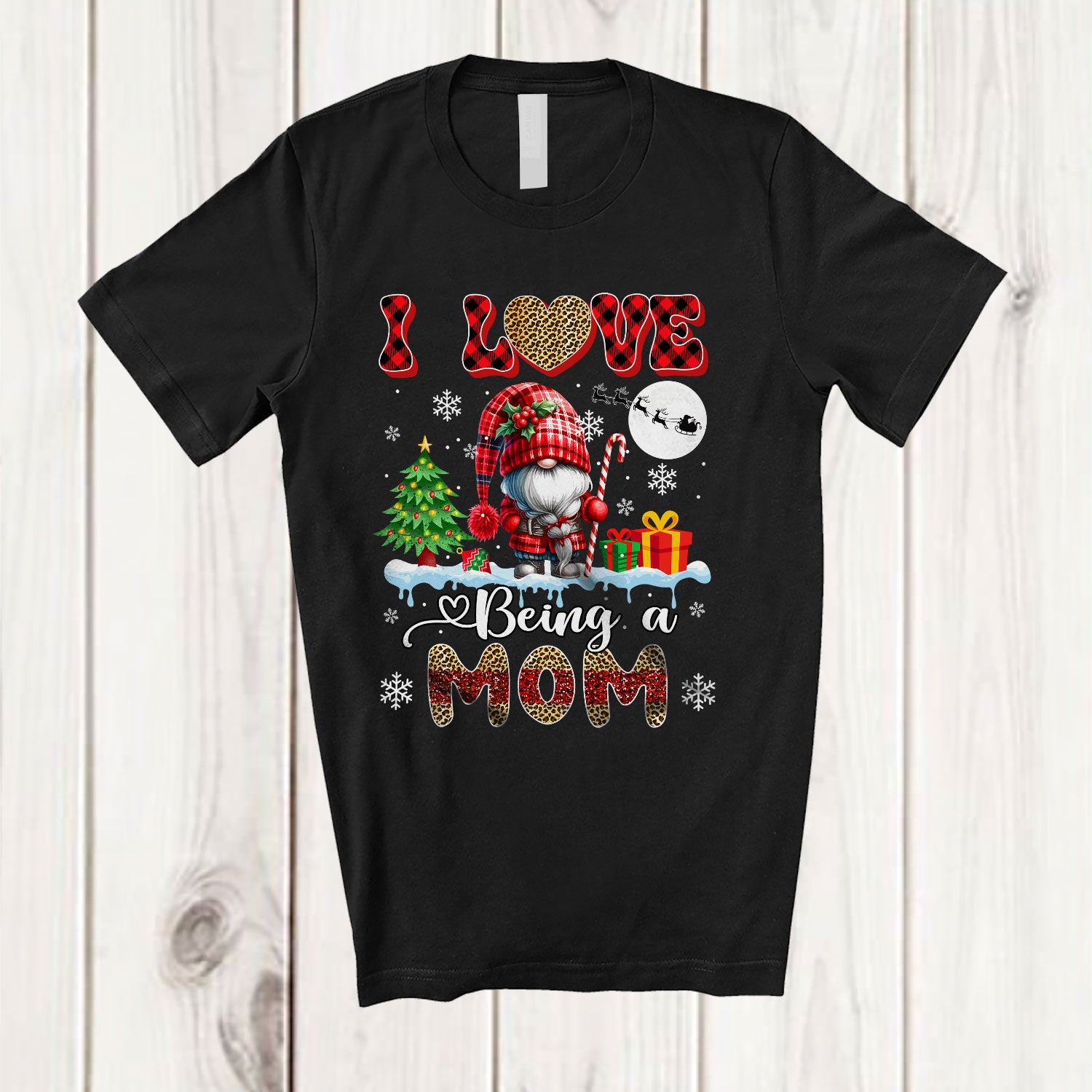 I Love Being A Mom; Wonderful Christmas Leopard Red Plaid Gnome; X-mas Family Group T-Shirt. This cotton t-shirt is a durable staple product with a classic fit. One of the most popular items, it has a relaxed style made for everyday and casual wear.