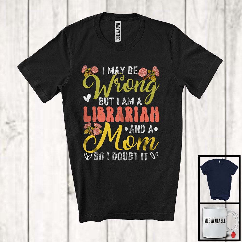 This I May Be Wrong But I Am A Librarian And A Mom, Awesome Mother's Day Flowers, Family T-Shirt is great idea gift for your family, friends in this birthday, christmas, mother's day, father's day, patrick's day or any holiday.