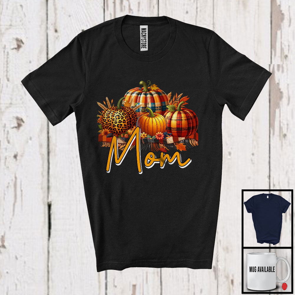 Mom, Awesome Thanksgiving Leopard Plaid Pumpkins Flowers Fall, Matching Family Group T-Shirt