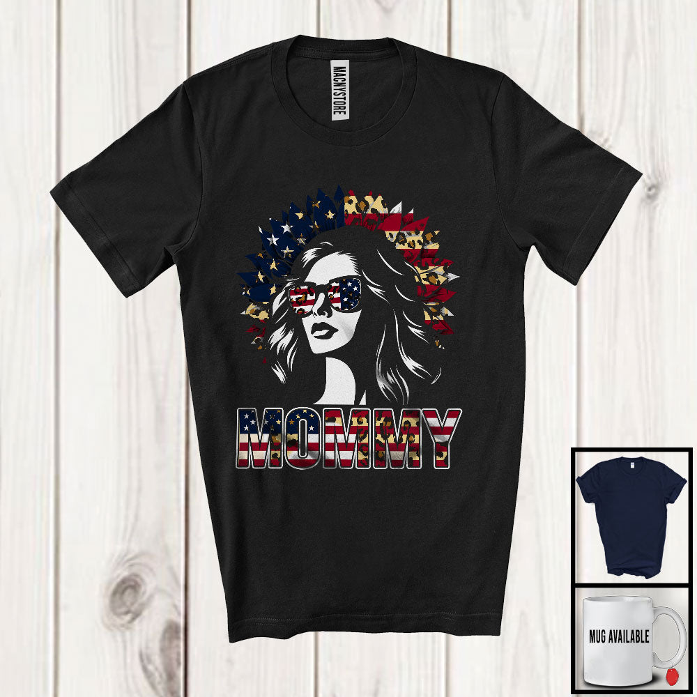 Mommy, Amazing 4th Of July American Flag Sunglasses Girl, Sunflower Patriotic Family Group T-Shirt. This cotton t-shirt is a durable staple product with a classic fit. One of the most popular items, it has a relaxed style made for everyday and casual wear.