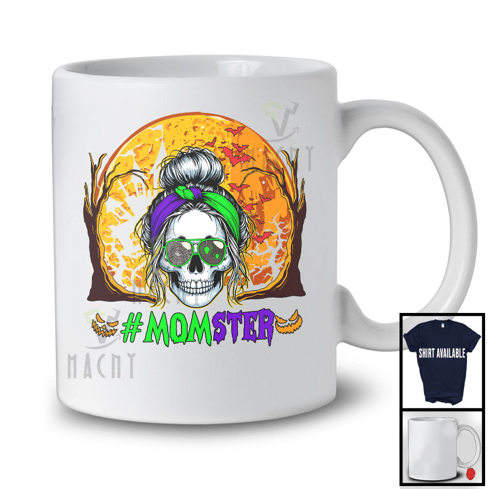 Momster; Creepy Halloween Costume Moon Skull Mom Messy Hair Bun; Monster Family Group T-Shirt