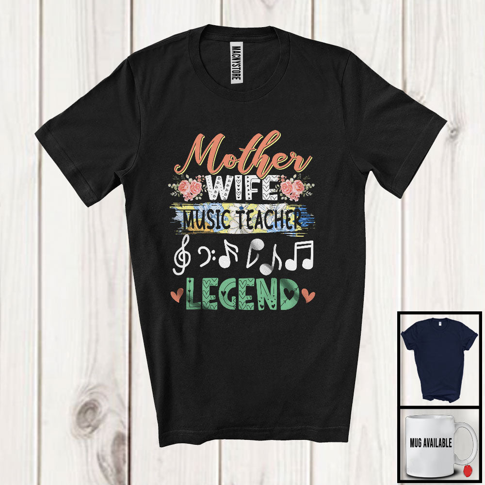 Mother Wife Music Teacher Legend, Floral Mother's Day Music Teacher Group, Mom Family T-Shirt