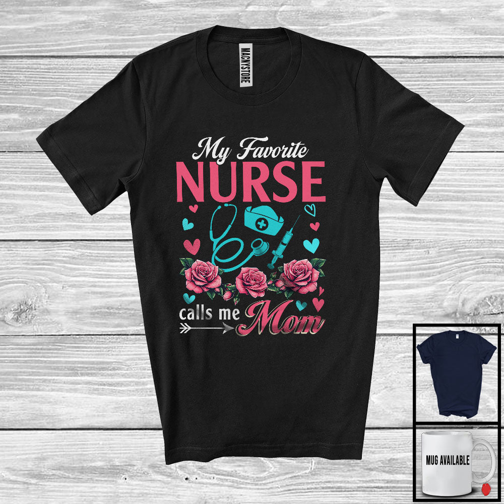 My Favorite Nurse Calls Me Mom, Amazing Mother's Day Flowers, Mommy Family Group T-Shirt. This cotton t-shirt is a durable staple product with a classic fit. One of the most popular items, it has a relaxed style made for everyday and casual wear.
