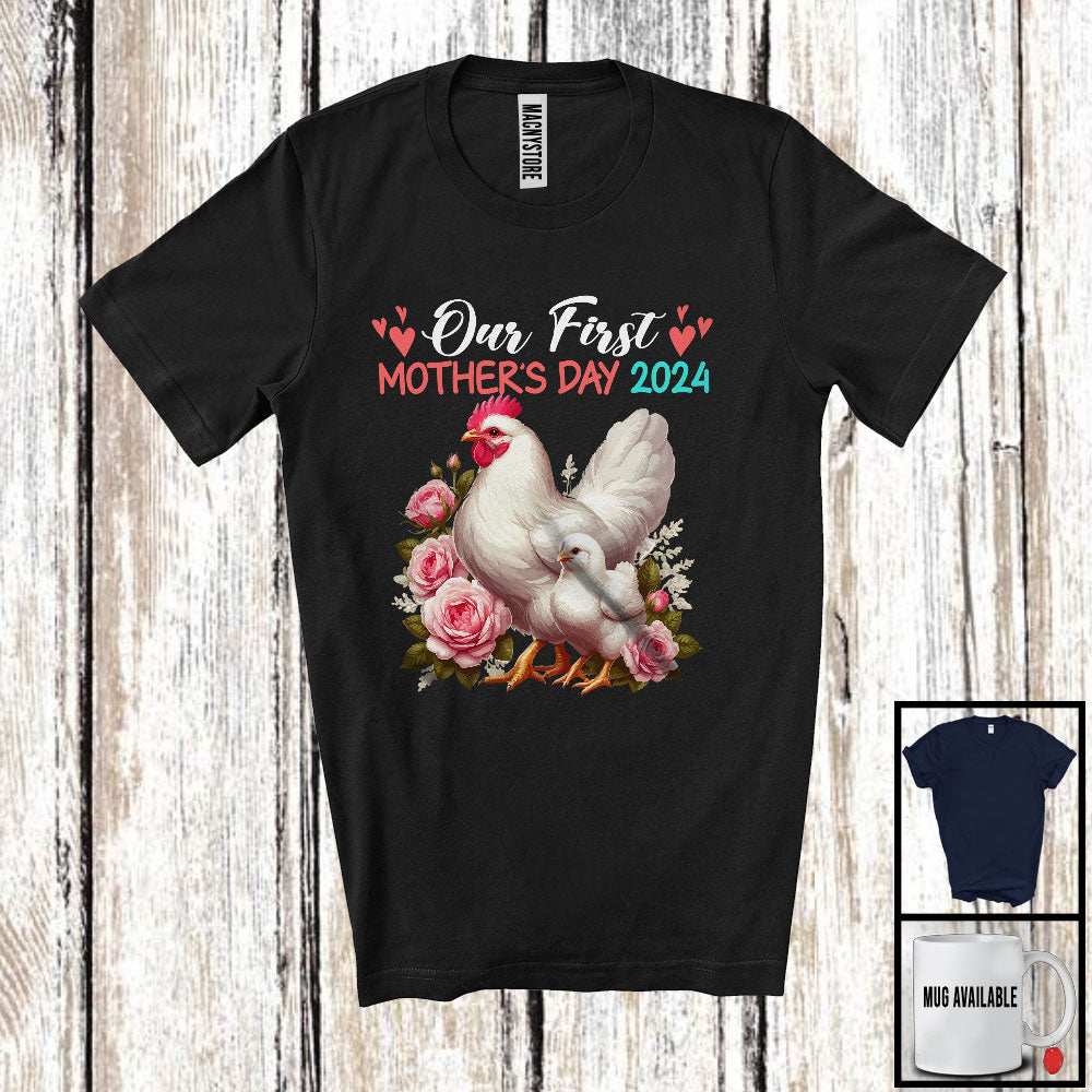 Our First Mother's Day 2024, Adorable Mother's Day Mommy Baby Chicken Lover, Flowers Family T-Shirt