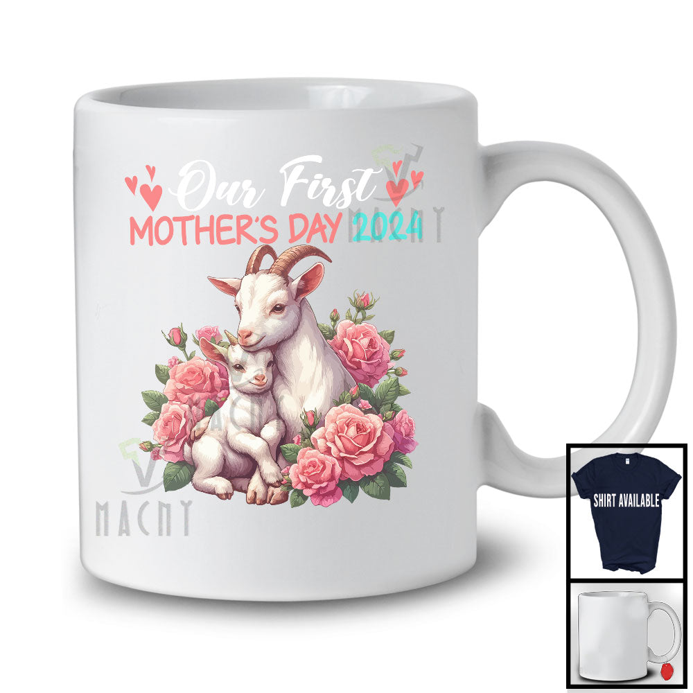 This Our First Mother's Day 2024, Adorable Mother's Day Mommy Baby Goat Lover, Flowers Family T-Shirt is great idea gift for your family, friends in this birthday, christmas, mother's day, father's day, patrick's day or any holiday.