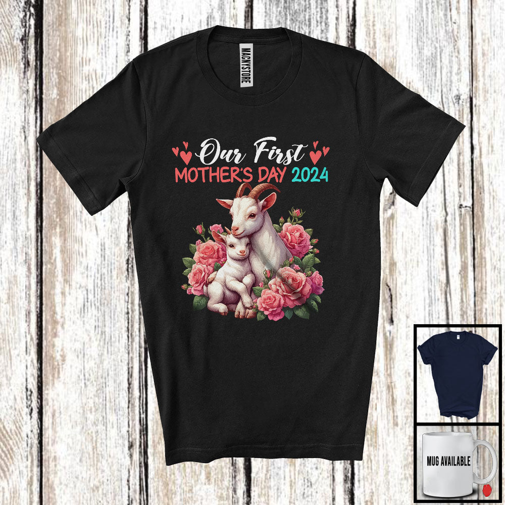 Our First Mother's Day 2024, Adorable Mother's Day Mommy Baby Goat Lover, Flowers Family T-Shirt