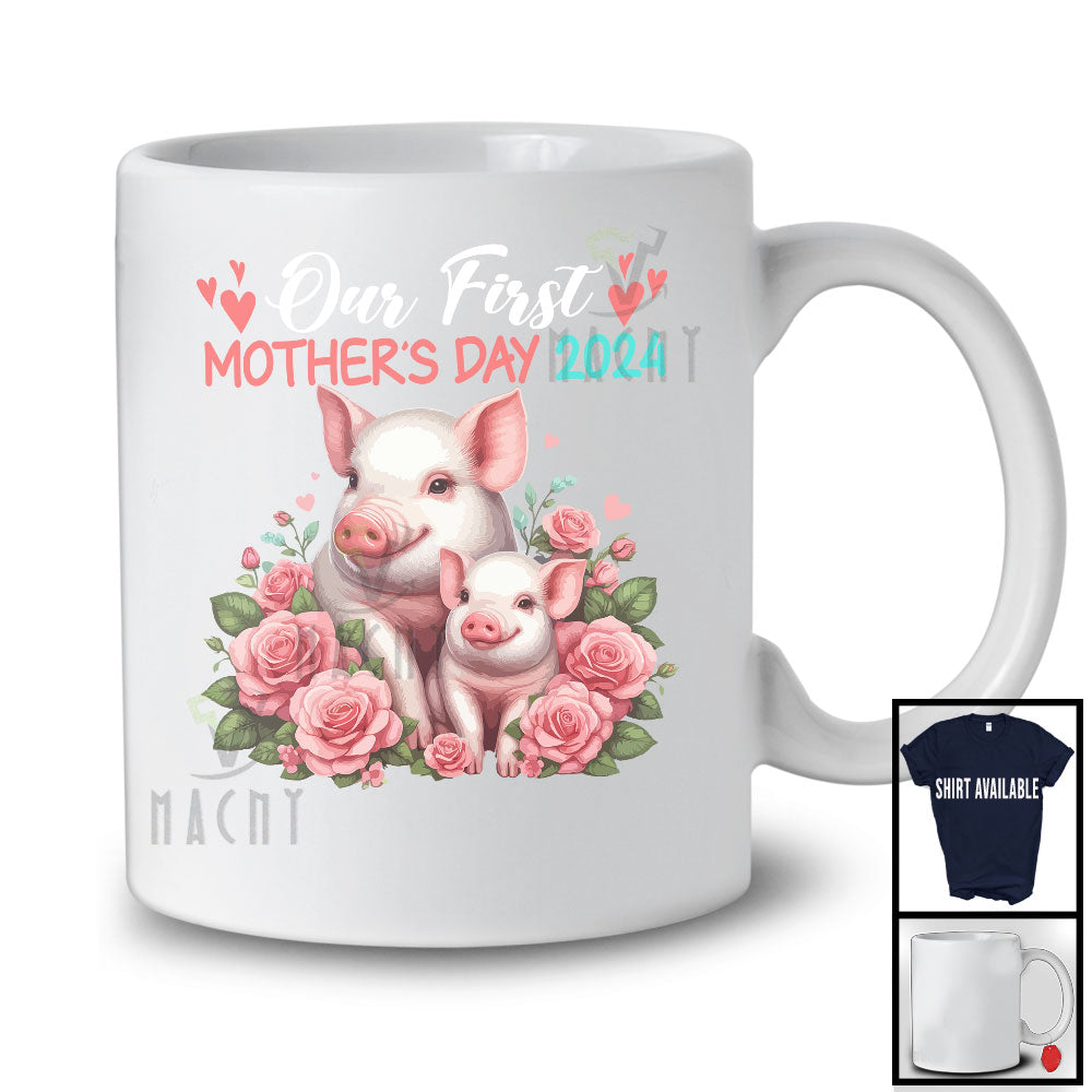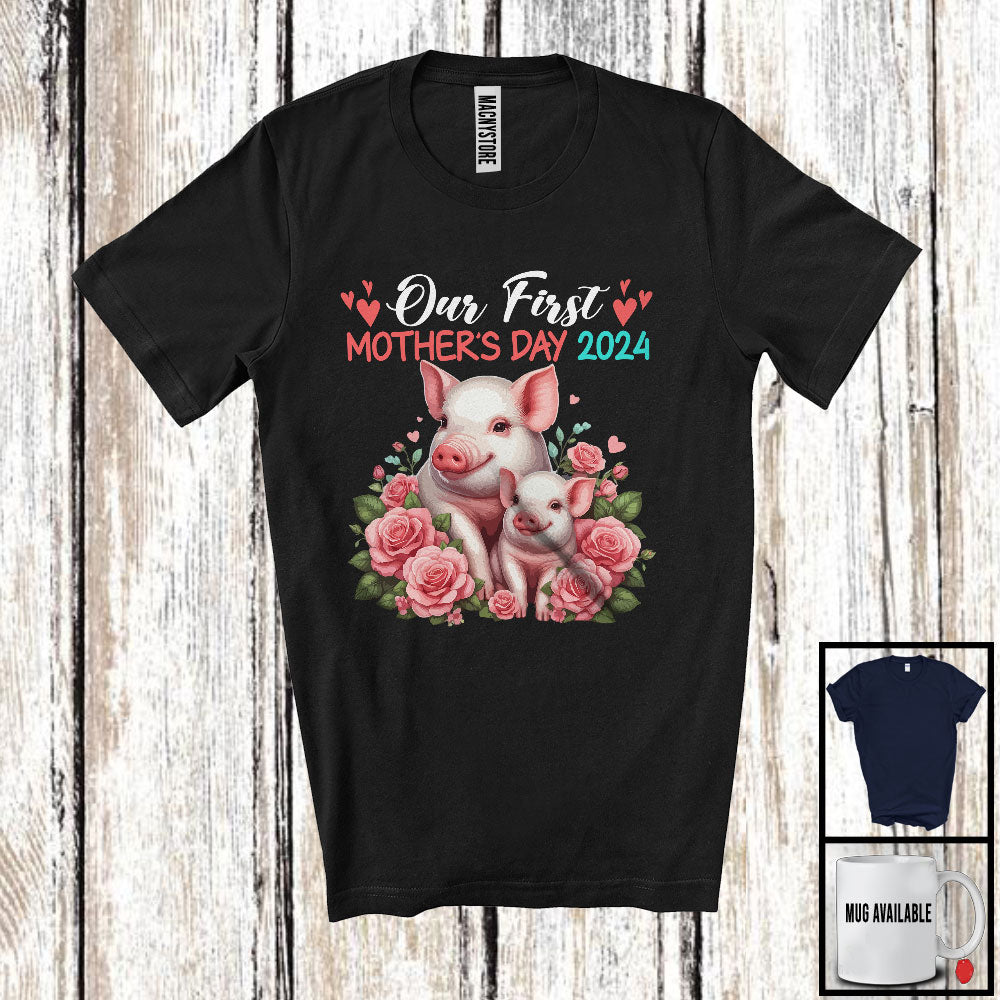 Our First Mother's Day 2024, Adorable Mother's Day Mommy Baby Pig Lover, Flowers Family T-Shirt