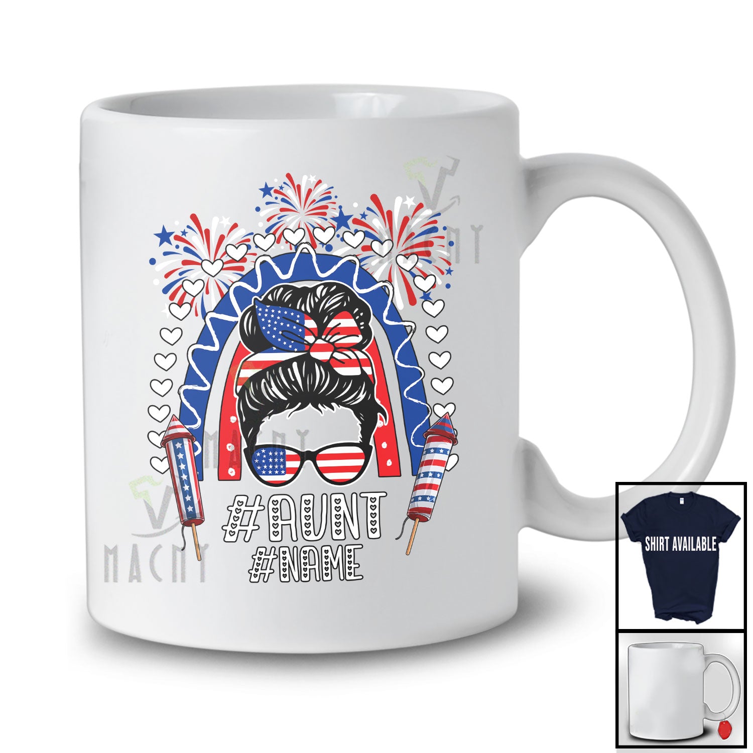 Personalized Custom Name Aunt; Amazing Mother's Day 4th Of July Bun Hair; Rainbow Patriotic T-Shirt. This cotton t-shirt is a durable staple product with a classic fit. One of the most popular items, it has a relaxed style made for everyday and casual wear.