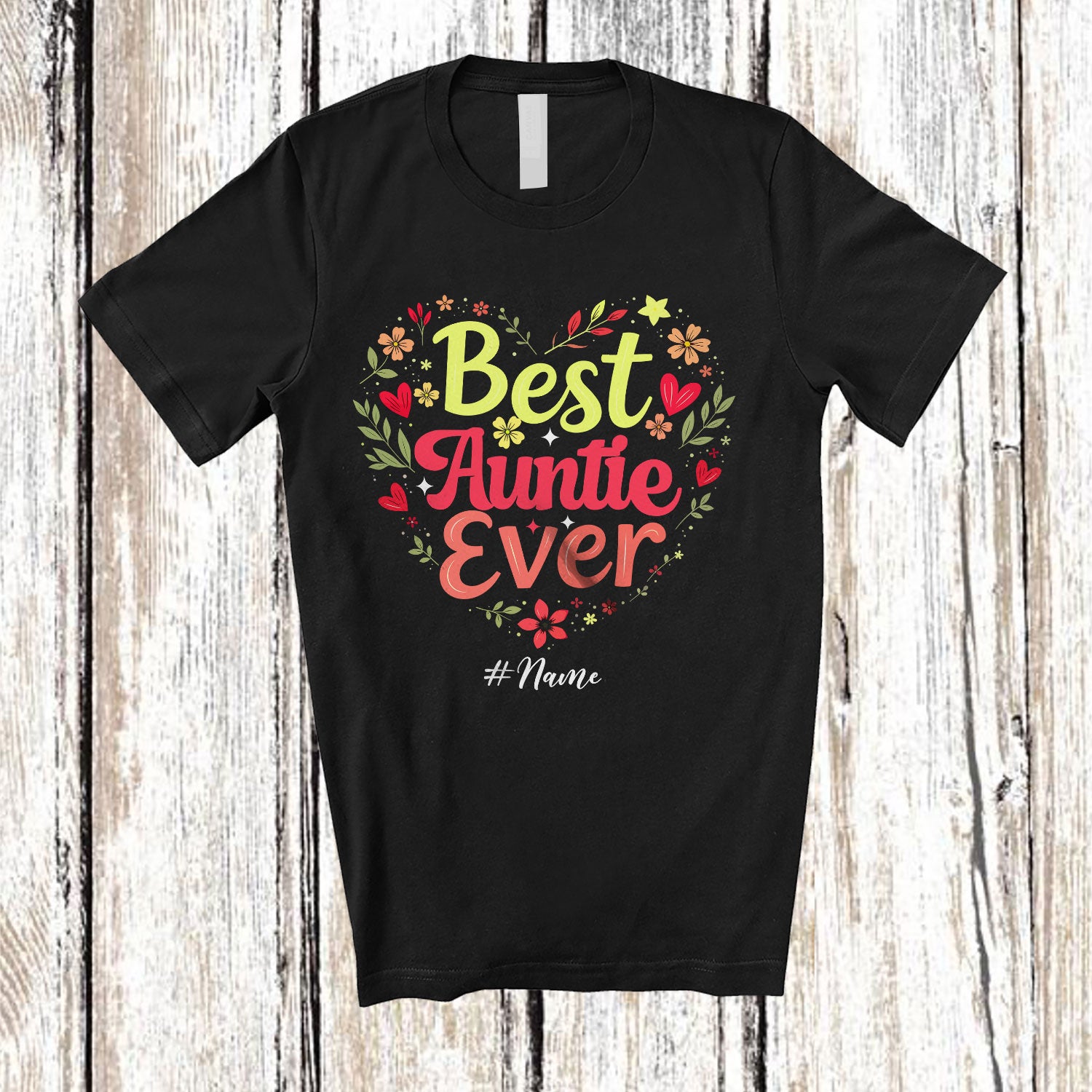 Personalized Custom Name Best Auntie Ever; Amazing Mother's Day Flowers Heart; Family T-Shirt
