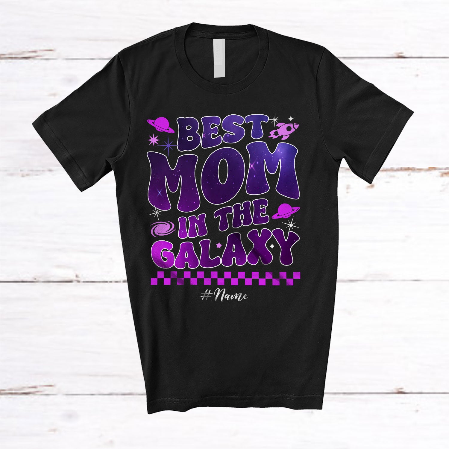 Personalized Custom Name Best Mom Galaxy; Joyful Birthday Mother's Day Mom Space; Family T-Shirt. This cotton t-shirt is a durable staple product with a classic fit. One of the most popular items, it has a relaxed style made for everyday and casual wear.