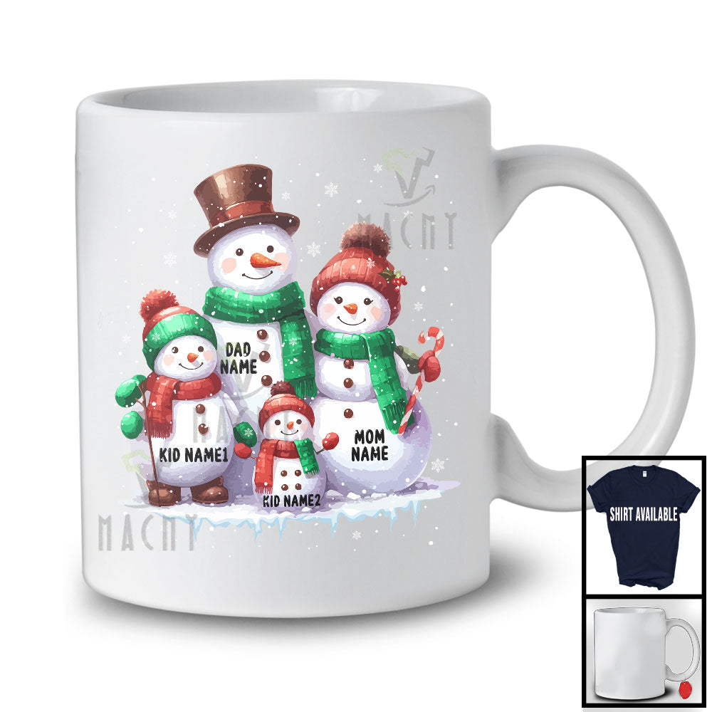 • Personalized Custom Name Christmas Family Snowman; Merry X-mas Dad Mom Snowing Family T-Shirt. This cotton t-shirt is a durable staple product with a classic fit. One of the most popular items, it has a relaxed style made for everyday and casual wear.