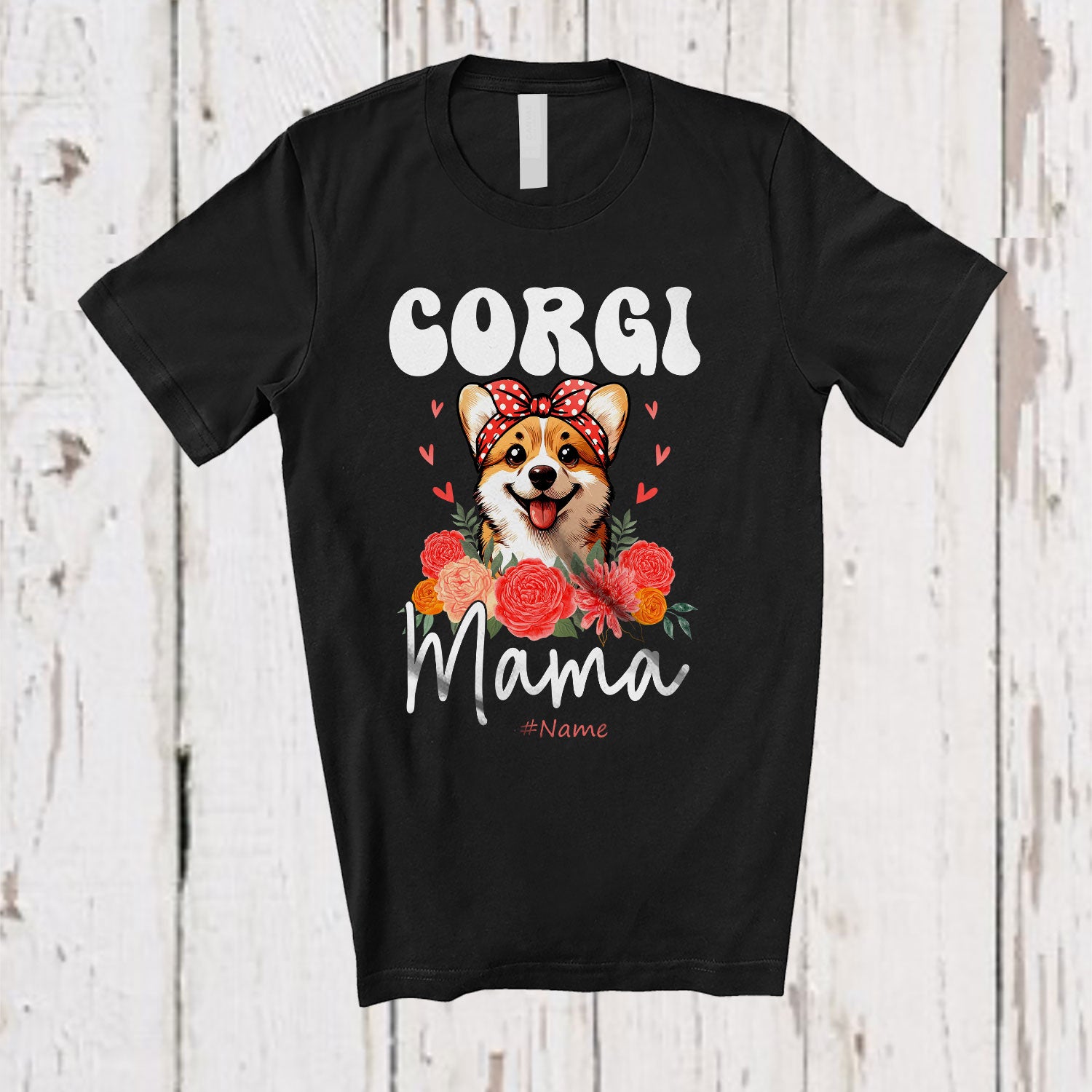 Personalized Custom Name Corgi Mama; Adorable Mother's Day Flowers Bandana; Family T-Shirt