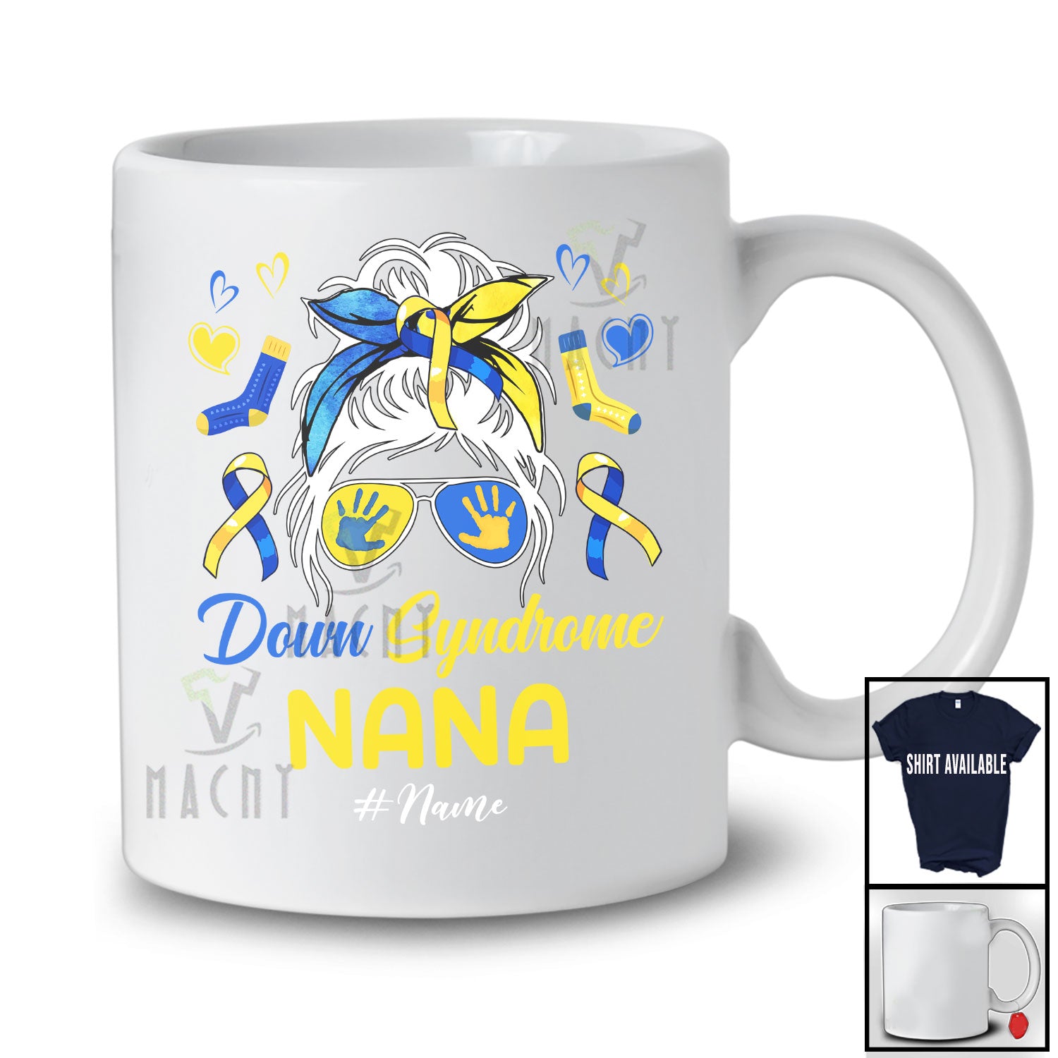 new MacnyStore - Personalized Custom Name Down Syndrome Nana; Lovely Mother's Day Messy Bun Hair; Family T-Shirt – Macnystore