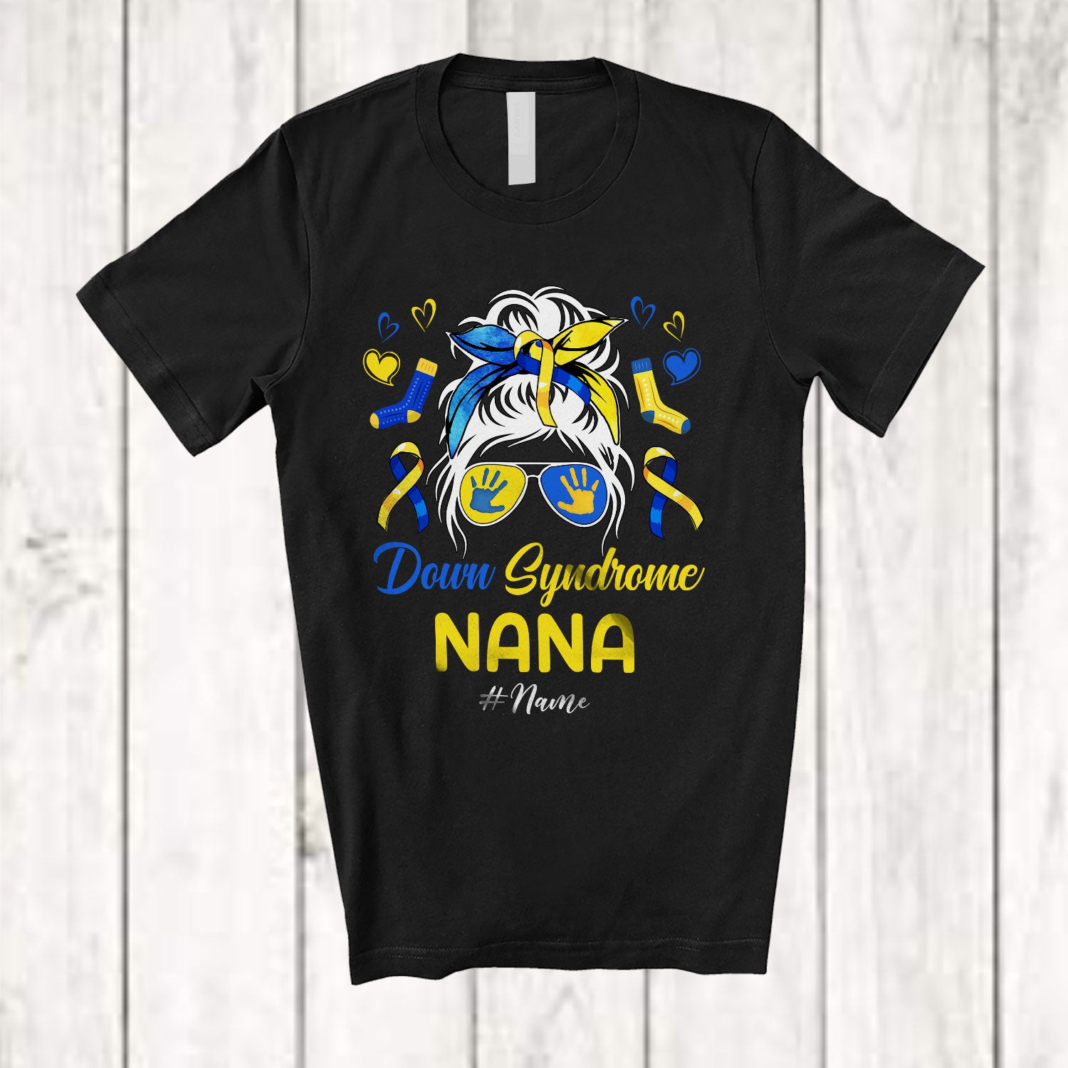 • The Personalized Custom Name Down Syndrome Nana; Lovely Mother's Day Messy Bun Hair; Family T-Shirt is far and away, one of our most popular items. People can't seem to get enough of it.