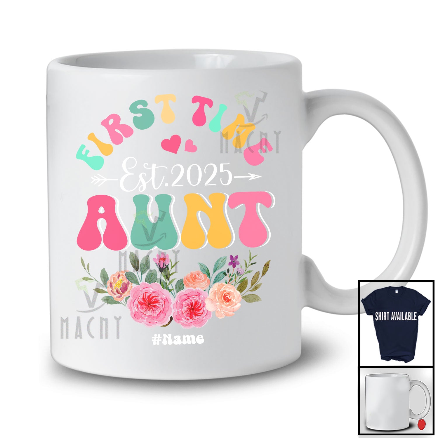 This Personalized Custom Name First Time Aunt Est. 2025; Lovely Mother's Day Pregnancy Flowers T-Shirt is great idea gift for your family, friends in this birthday, christmas, mother's day, father's day, patrick's day or any holiday.