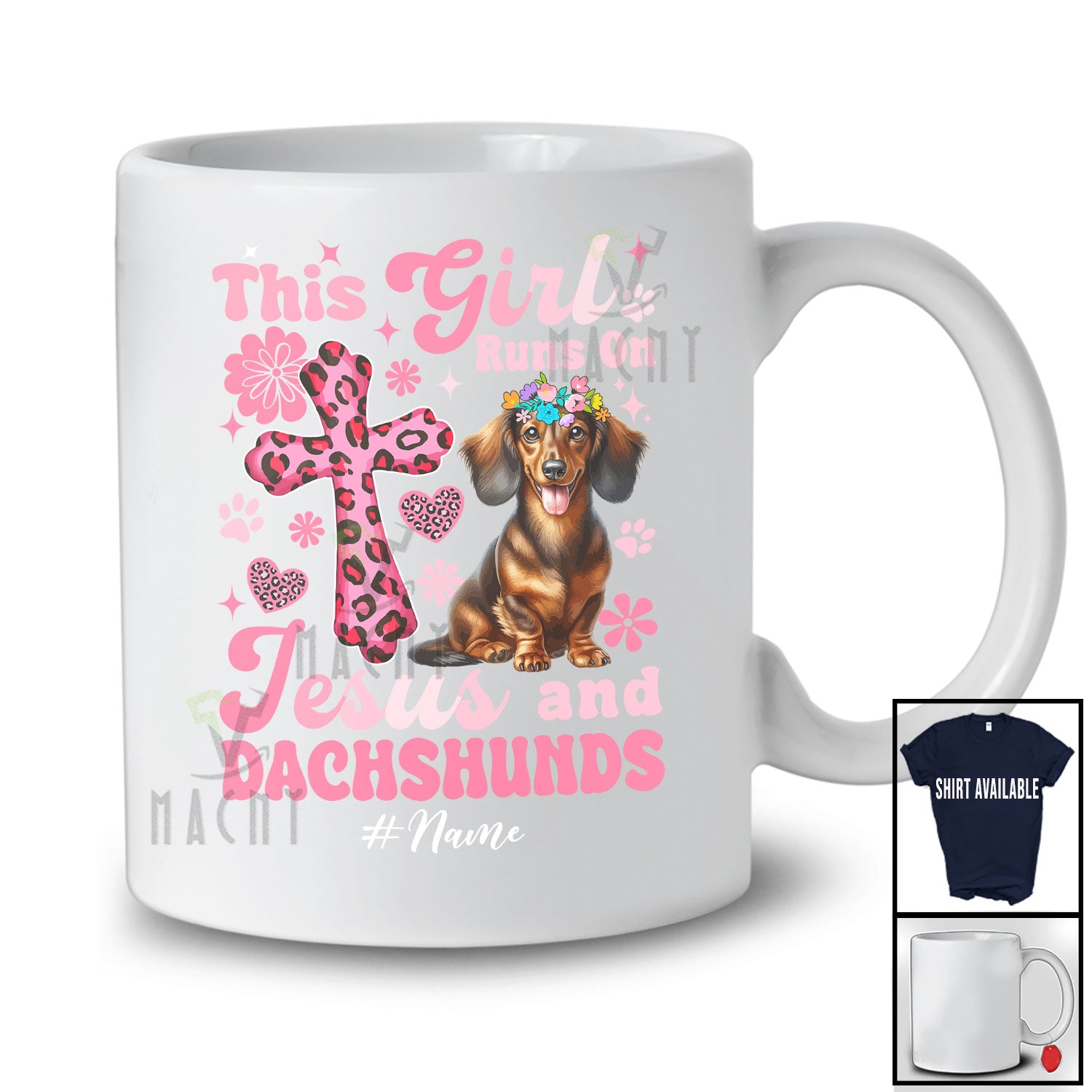 Personalized Custom Name Girl Runs On Jesus And Dachshunds; Lovely Mother's Day Animal Family T-Shirt