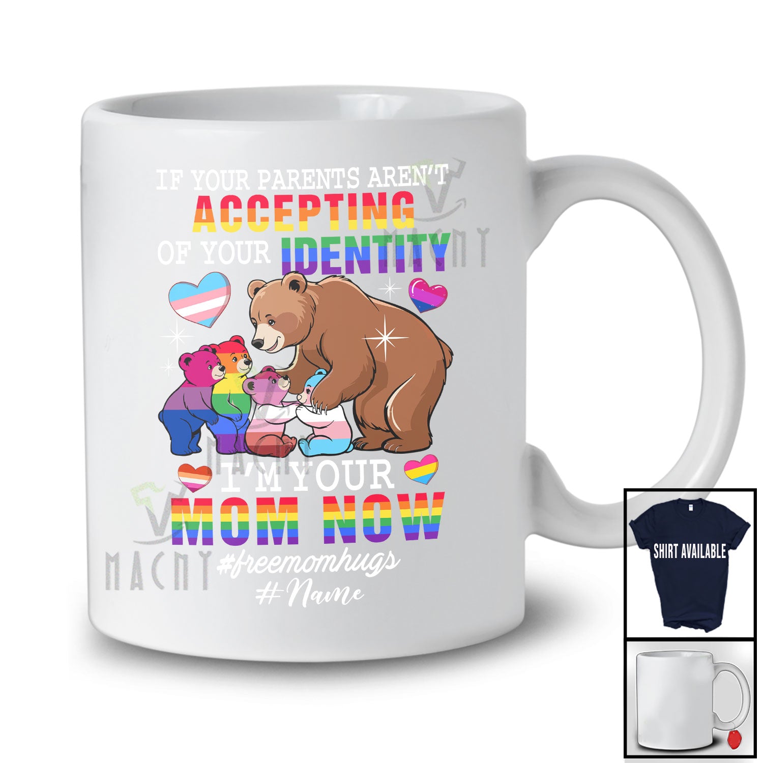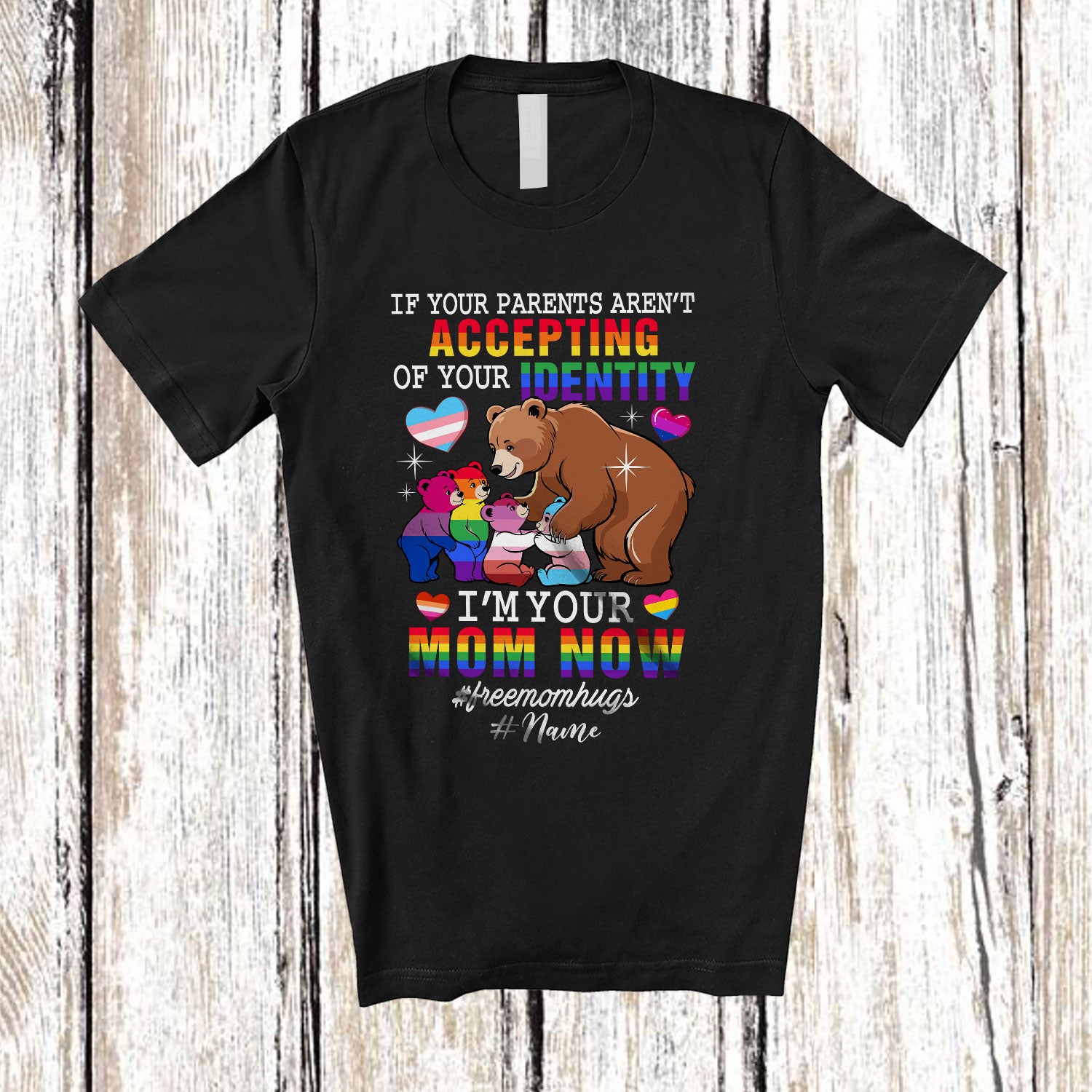 Personalized Custom Name If Your Parents Aren't Accepting Mom; Joyful LGBTQ Rainbow Bears T-Shirt
