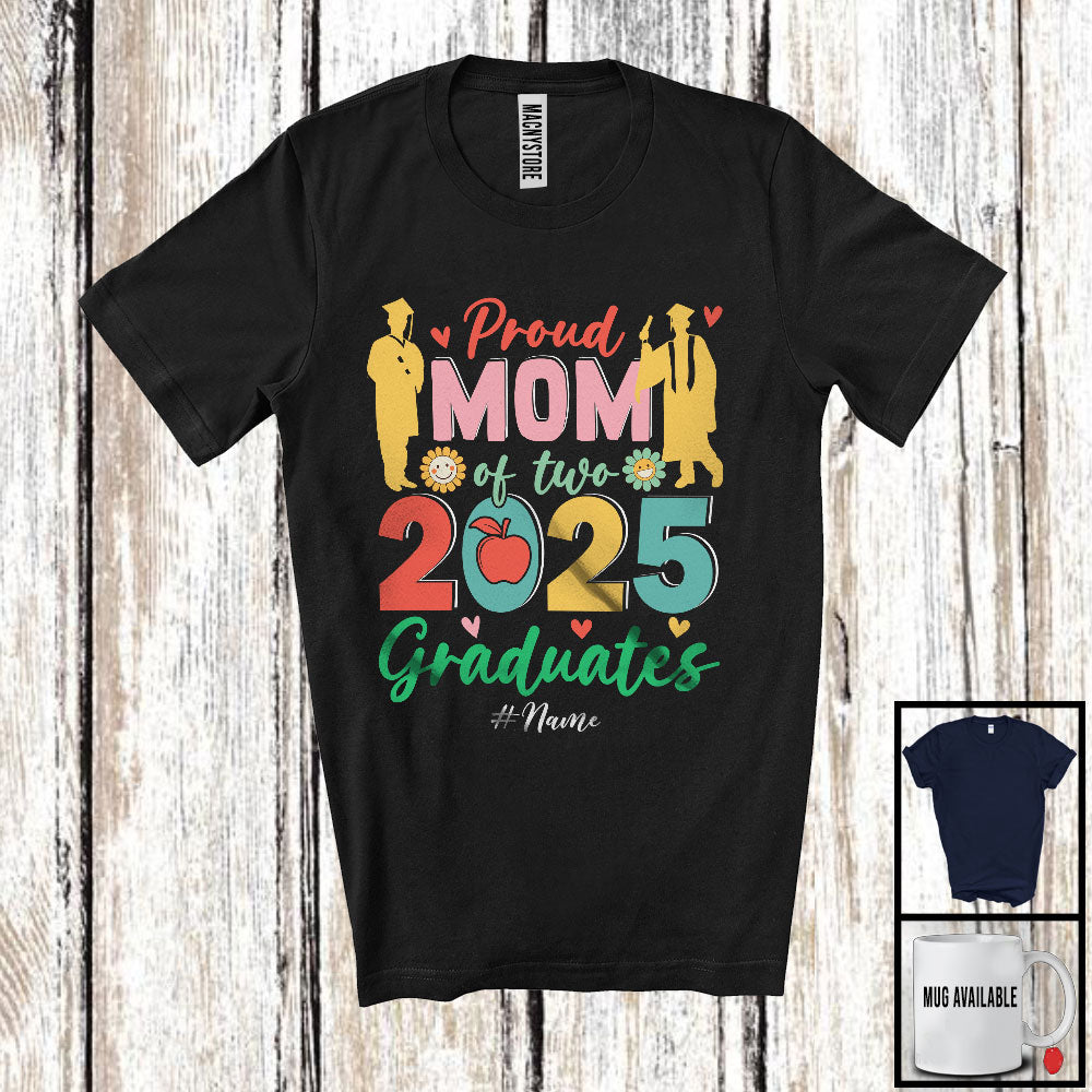 Personalized Custom Name Mom Of Two 2025 Graduates; Proud Mother's Day Twin Boys; Graduation T-Shirt