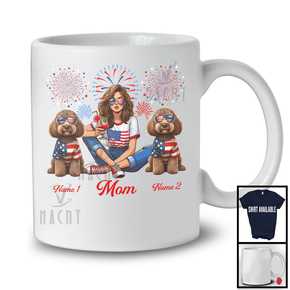 Personalized Custom Name Mom With Two Sproodle, Amazing 4th Of July Fireworks Patriotic T-Shirt