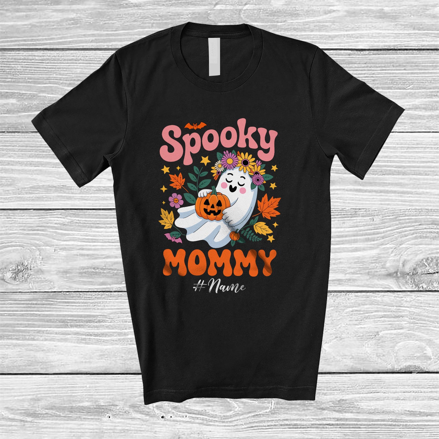 Personalized Custom Name Spooky Mommy; Adorable Halloween Boo Ghost Flowers Floral; Family T-Shirt