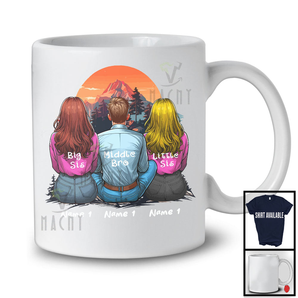 Personalized Custom Name Two Sisters Middle Brother, Happy Father Mother's Day Siblings Cousin T-Shirt. This cotton t-shirt is a durable staple product with a classic fit. One of the most popular items, it has a relaxed style made for everyday and casual wear.