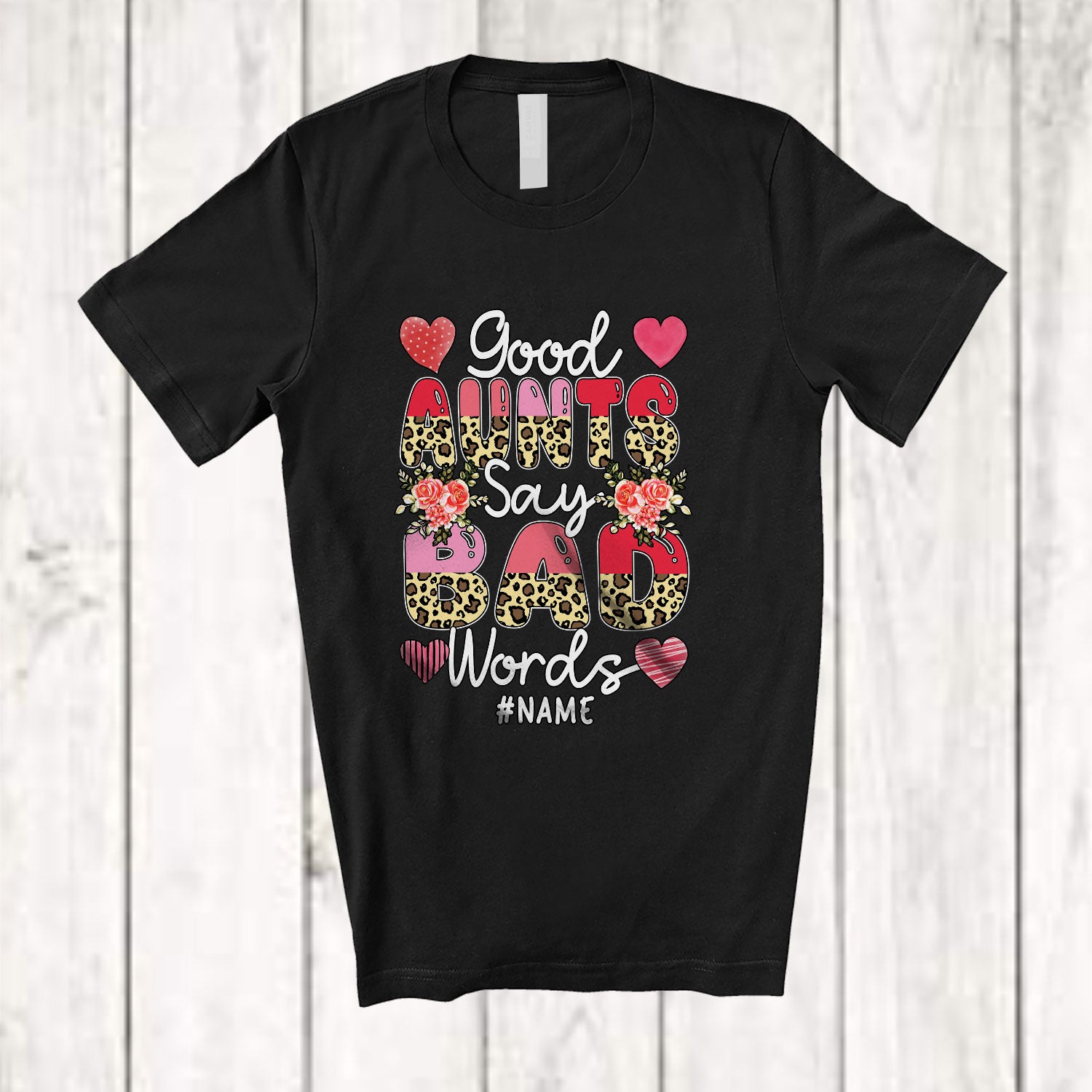 Personalized Good Aunts Say Bad Words; Lovely Mother's Day Leopard; Custom Name Family T-Shirt