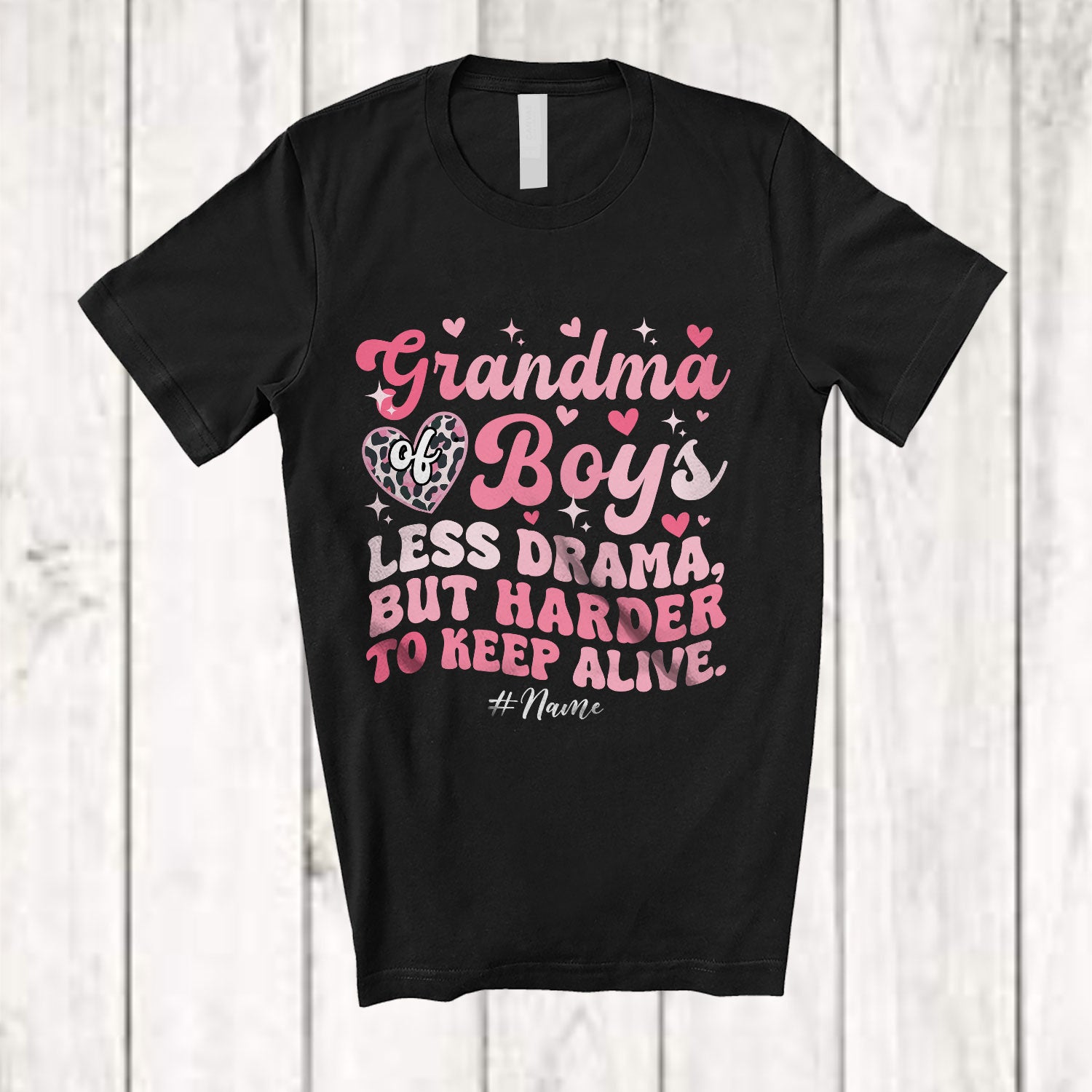 • Personalized Grandma of Boys Less Drama; Lovely Mother's Day Custom Name Leopard Heart T-Shirt. This cotton t-shirt is a durable staple product with a classic fit. One of the most popular items, it has a relaxed style made for everyday and casual wear.