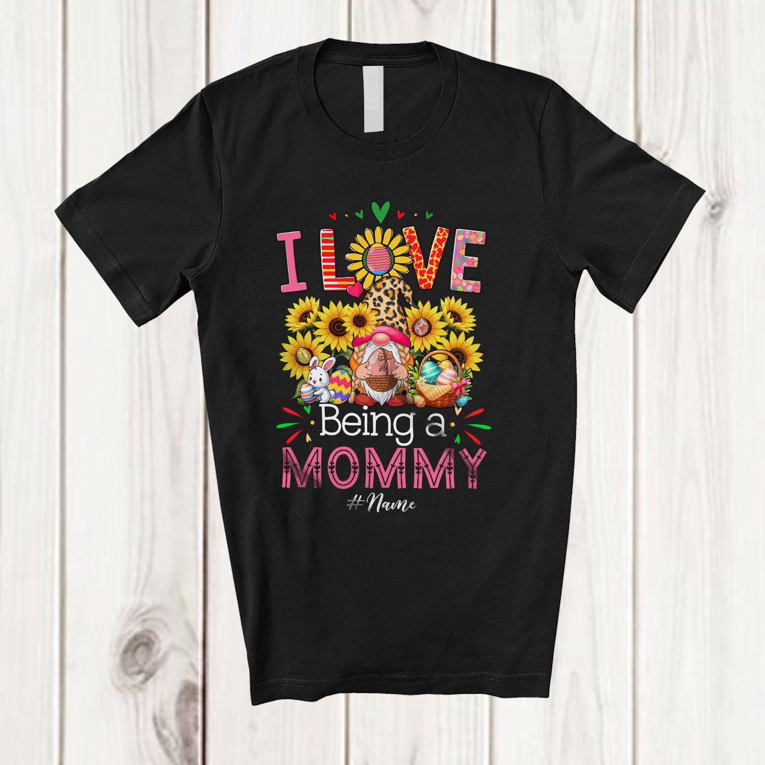 Personalized I Love Being A Mommy; Lovely Easter Custom Name Family Gnome; Sunflower T-Shirt