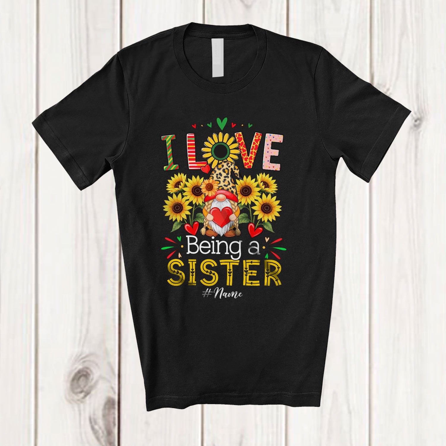 The Personalized I Love Being A Sister; Lovely Mother's Day Custom Name Family Gnome; Sunflower T-Shirt is the yin, to your yang. You've found what you're looking for.