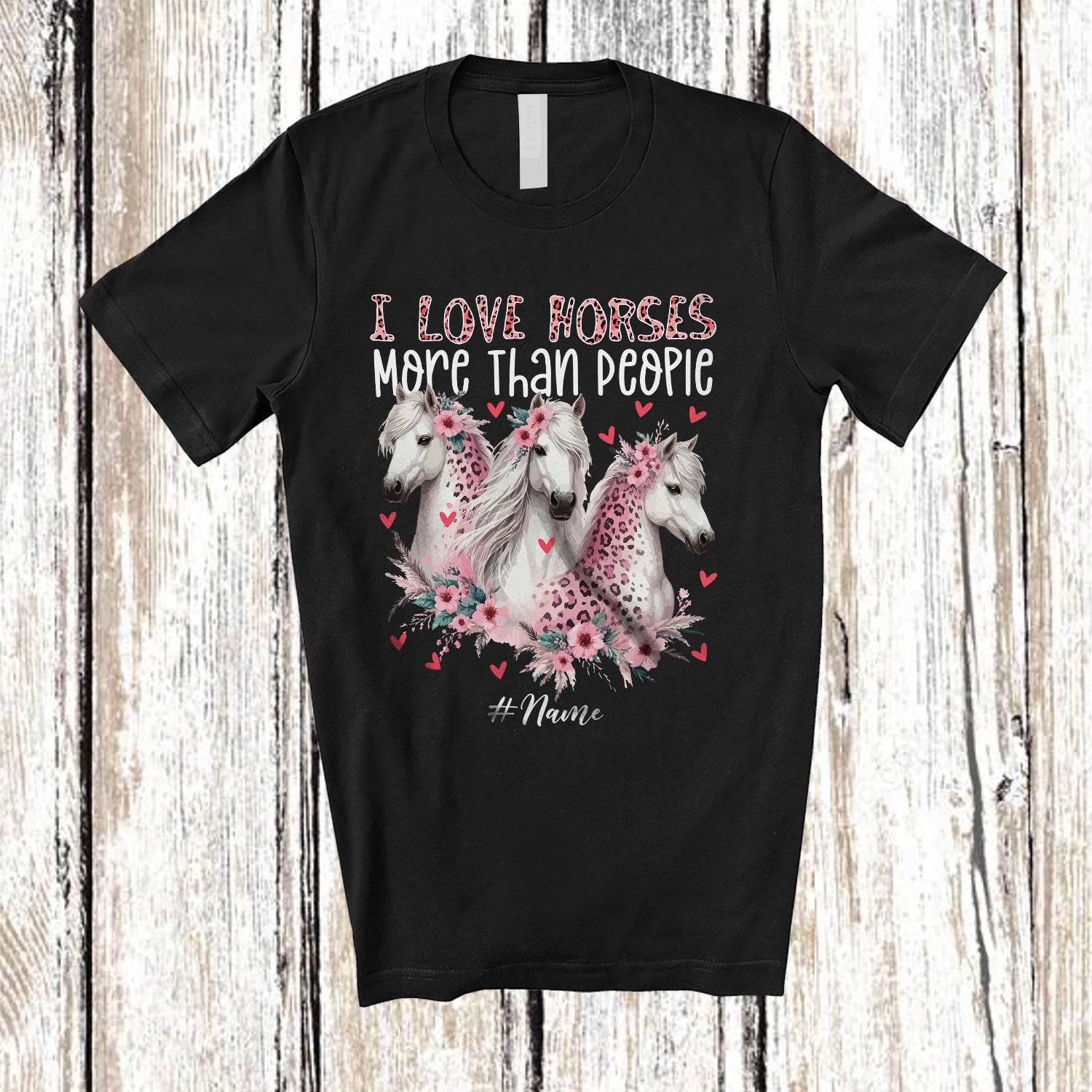 Personalized I Love Horses More Than People; Floral Mother's Day Leopard Custom Name Farmer T-Shirt