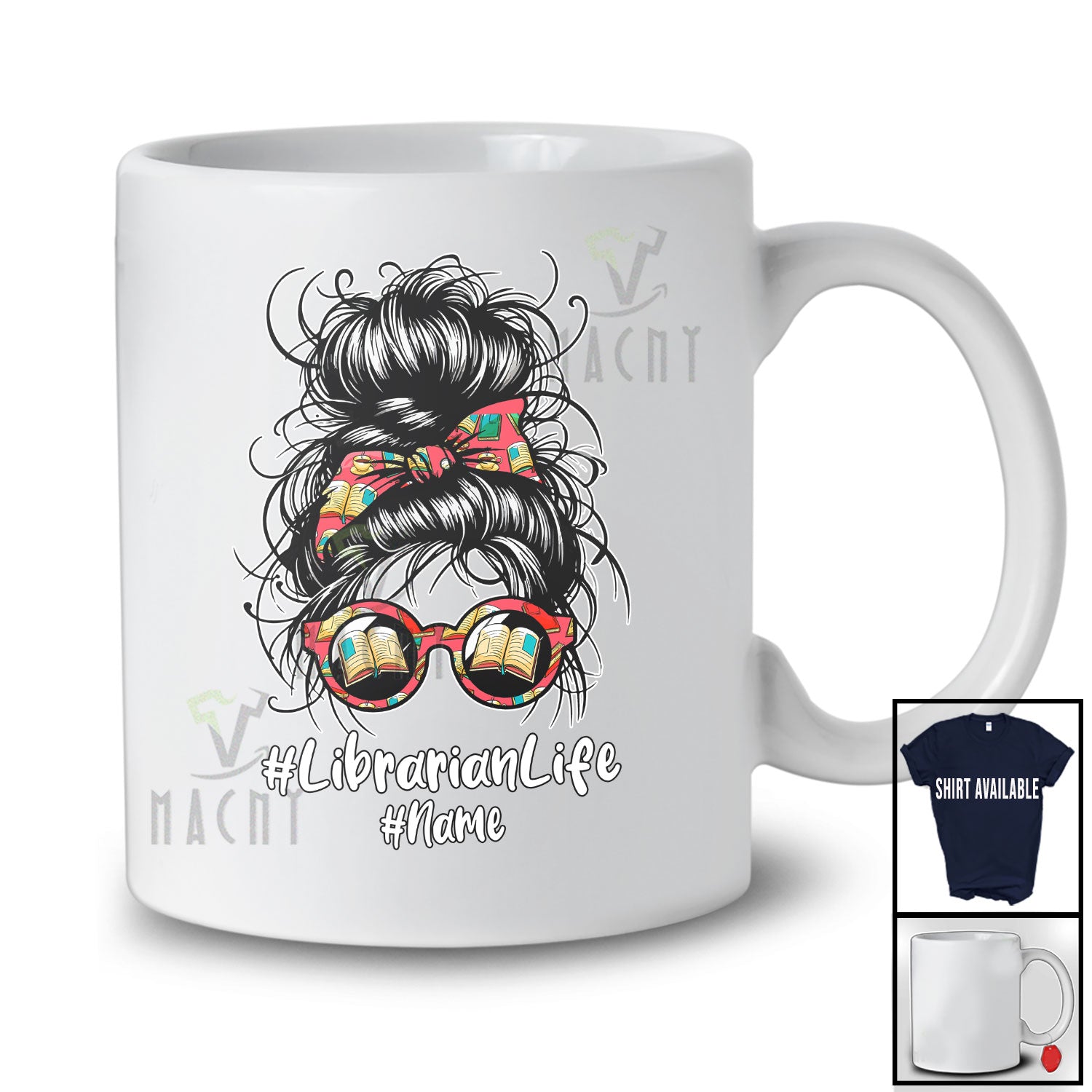 • The Personalized Librarianlife; Proud Mother's Day Custom Name Librarian Messy Bun Hair T-Shirt was built with people like you in mind. Something to keep you happy. Every. Single. Day.