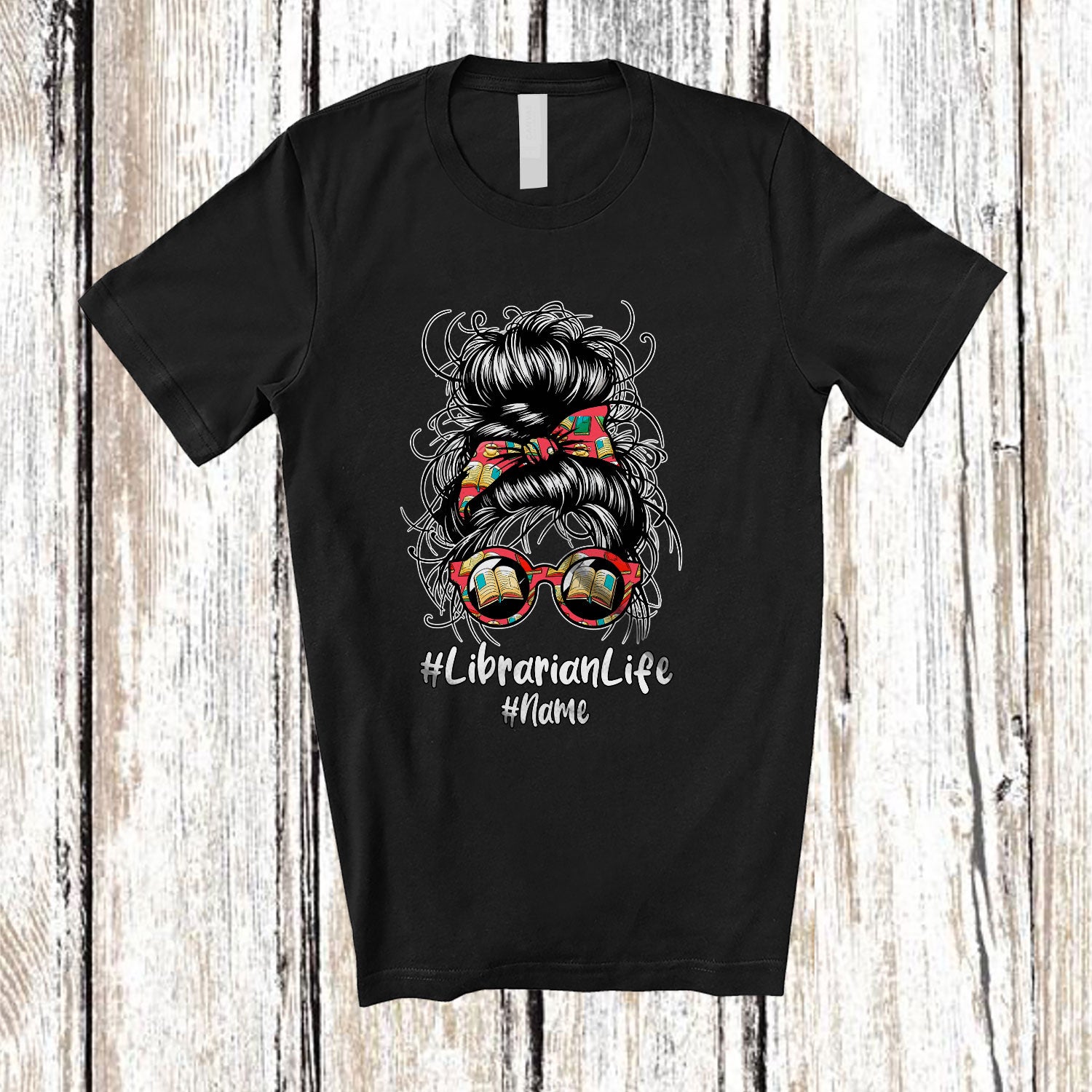 Personalized Librarianlife; Proud Mother's Day Custom Name Librarian Messy Bun Hair T-Shirt