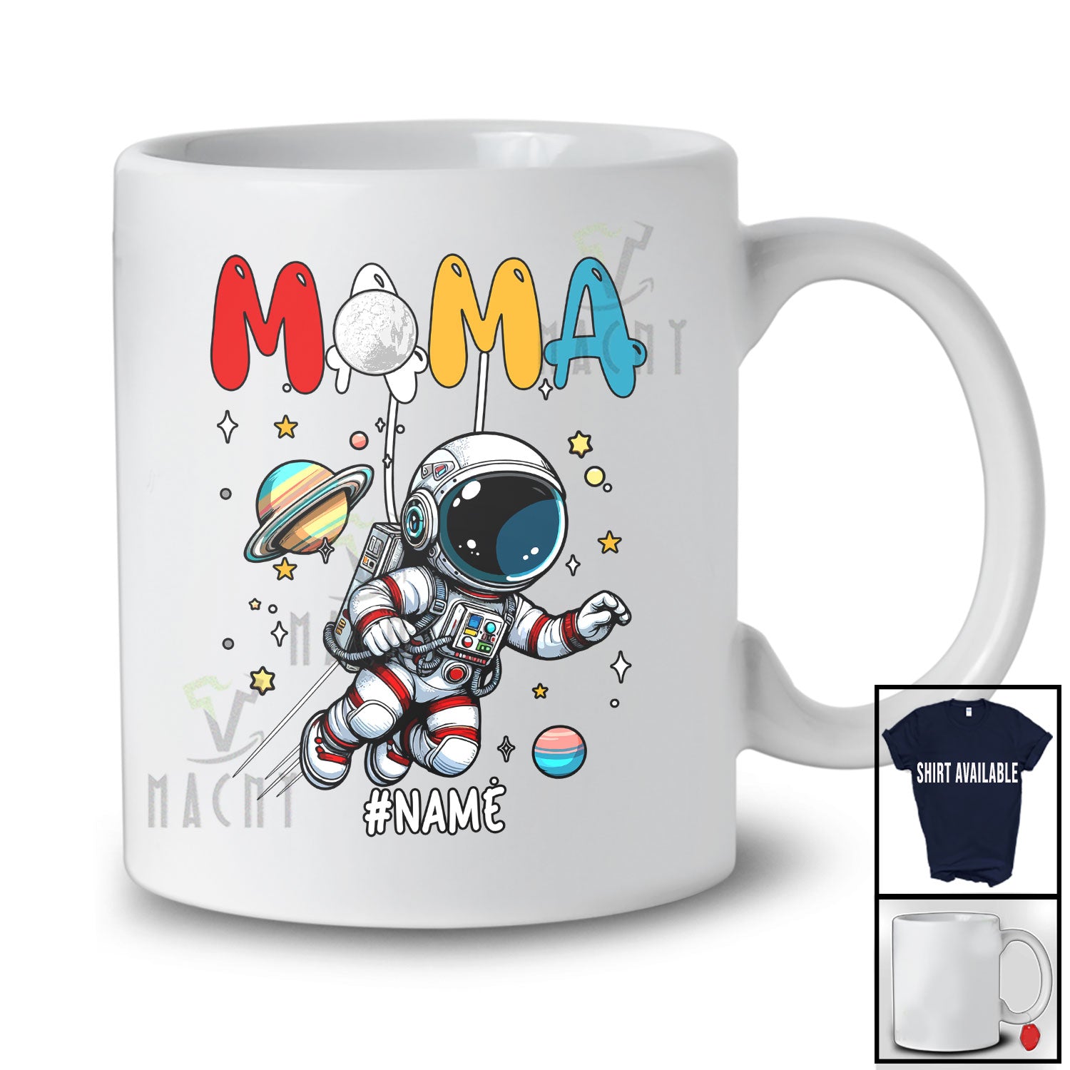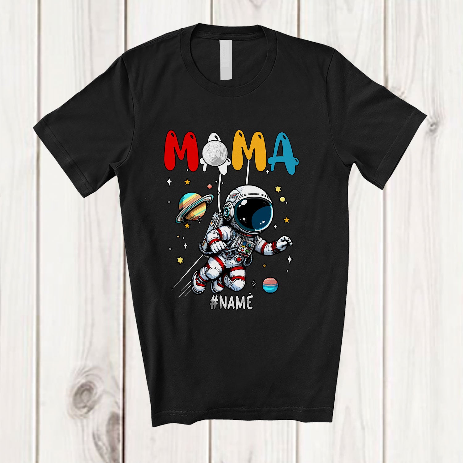 Personalized Mama; Wonderful Mother's Day Astronaut Space; Custom Name Family Group T-Shirt. This cotton t-shirt is a durable staple product with a classic fit. One of the most popular items, it has a relaxed style made for everyday and casual wear.