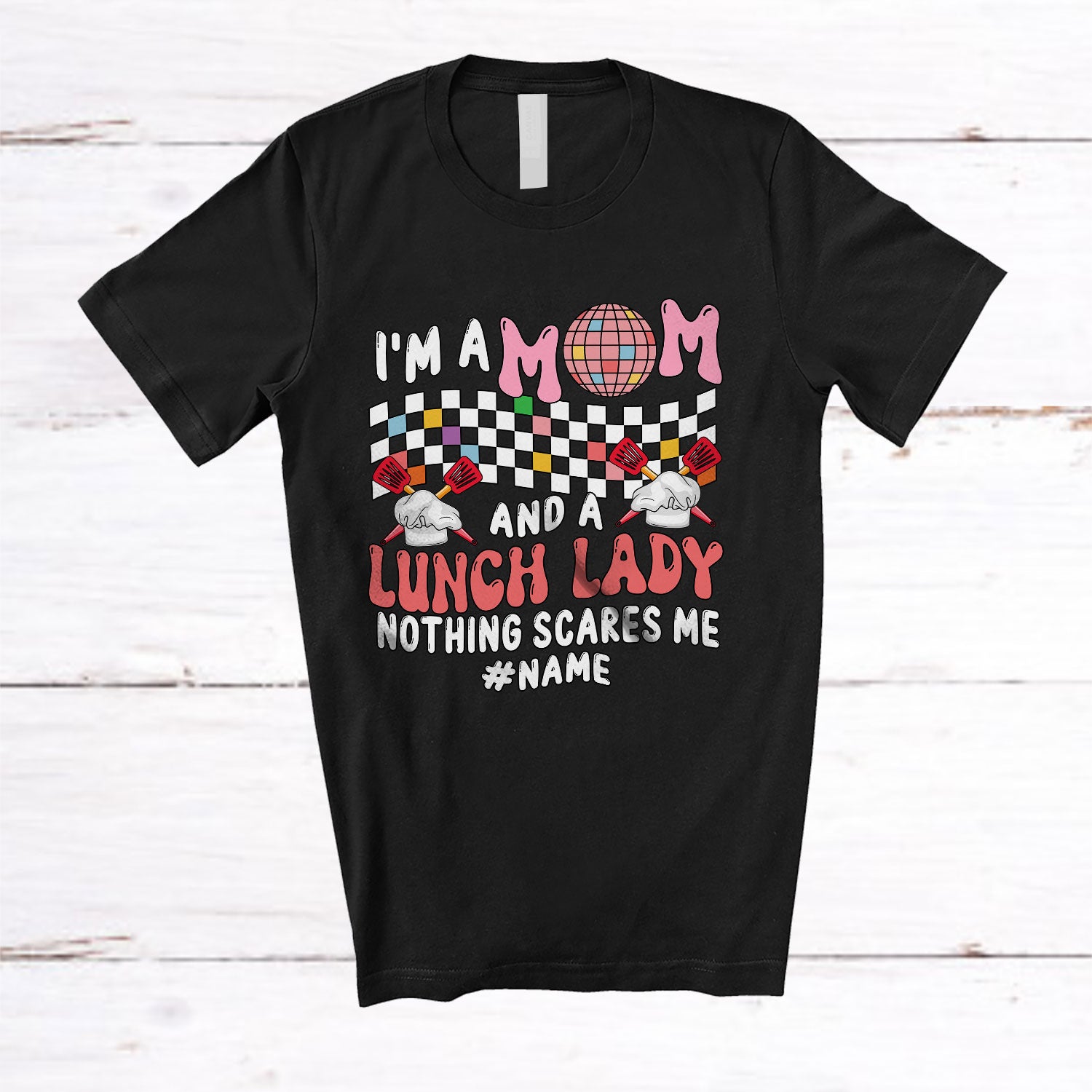Personalized Mom Lunch Lady Nothing Scares Me; Proud Mother's Day Custom Name Family Jobs T-Shirt